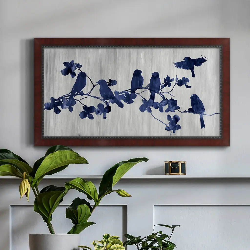 Indigo Hangout Premium Framed Canvas- Ready To Hang - 18x34 - Mahogany