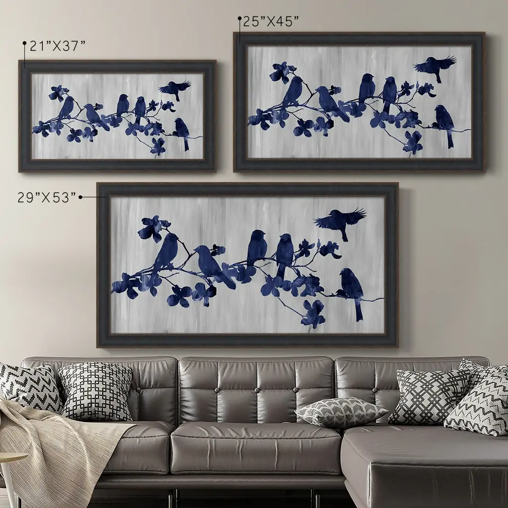 Indigo Hangout Premium Framed Canvas- Ready to Hang A Premium Framed Canvas created to last. Framed in distressed wood and available in an array of sizes and colors Featuring a beveled a solid wood stretcher bar, each piece comes ready to hand 3 SIZES AVAILABLE 21''X37'' - Overall Size 25''X45'' - Overall Size 29''x53'' - Overall Size Each piece is made to order. Each piece comes with hanging hardware. Made in the USA Ready to Hang Giclee Paper Print Acrylic Glass Beveled Matt Board