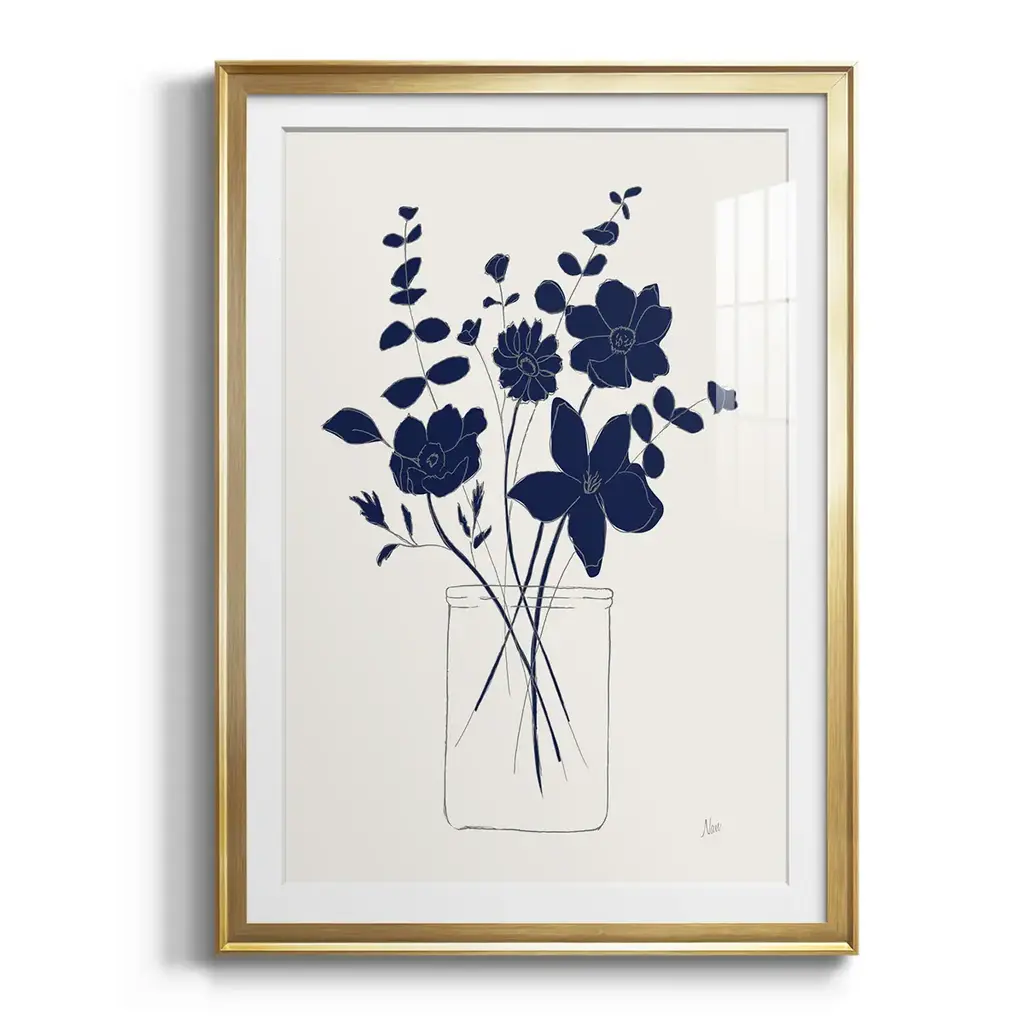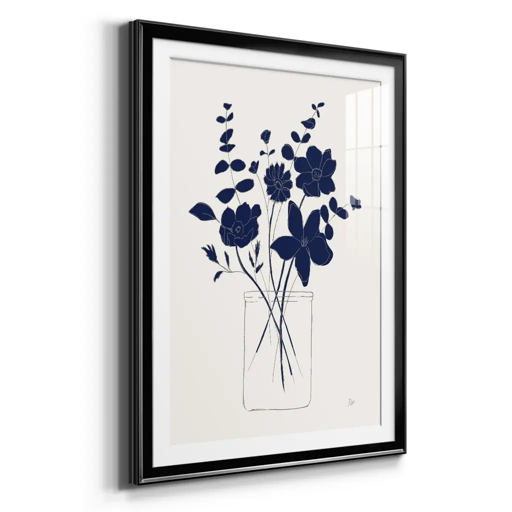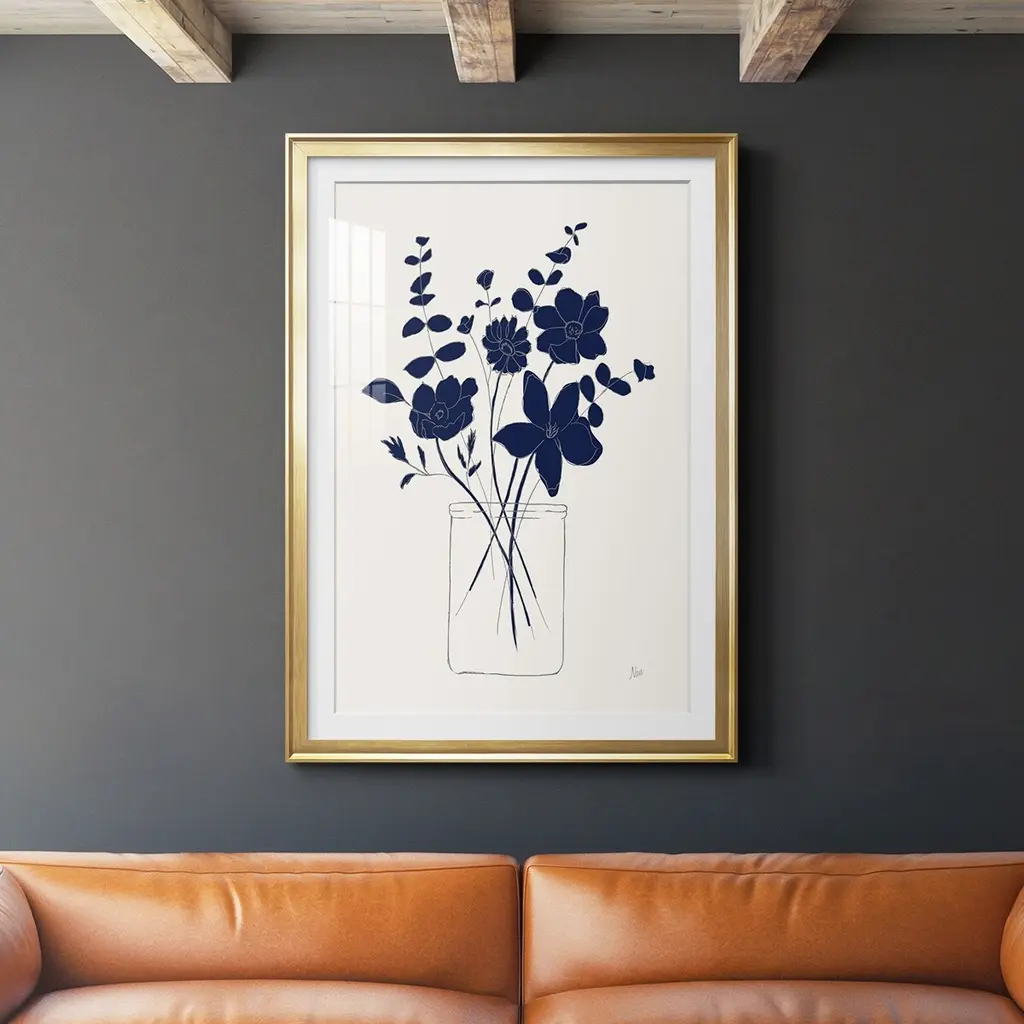 Indigo Sketch Bouquet I Premium Framed Print - Ready to Hang A Premium Framed Print created to last. Framed in distressed wood and available in an array of sizes and colors Featuring a beveled a solid wood stretcher bar, each piece comes ready to hand 4 SIZES AVAILABLE 30.5''X42.5'' - Overall Size 26.5'X36.5'' - Overall Size 22.5''x30.5'' - Overall Size 18.5''x24.5'' - Overall Size Each piece is made to order. Each piece comes with hanging hardware. Made in the USA Ready to Hang Giclee Paper Print Acrylic Glass Beveled Matt Board