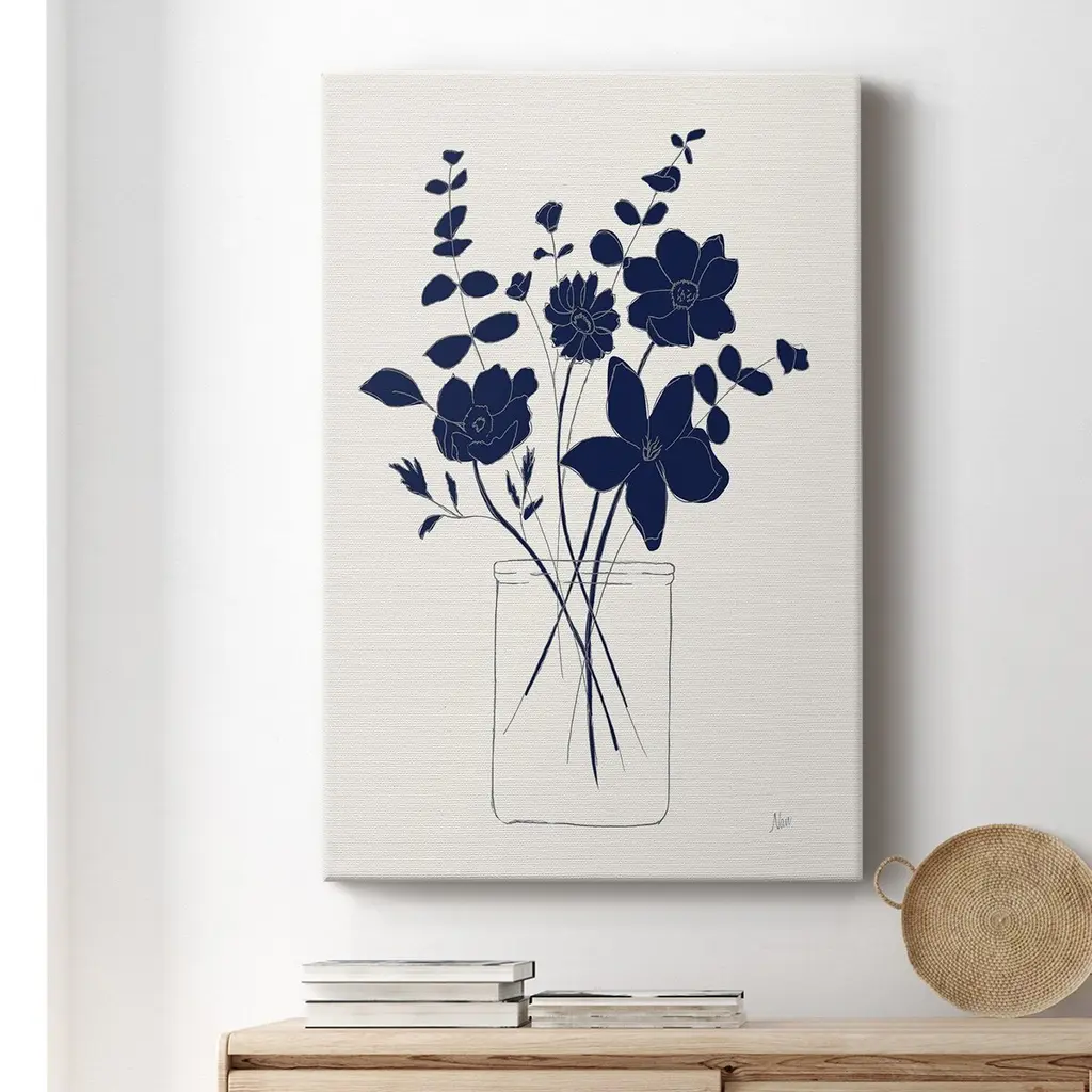 Indigo Sketch Bouquet I Premium Gallery Wrapped Canvas - Ready to Hang A premium hand stretched gallery wrapped canvas print created to last. Featuring a beveled a solid wood stretcher bar, each piece comes ready to hand 6 SIZES AVAILABLE 8''X12'' - Overall Size 12''X18'' - Overall Size 18''X27'' - Overall Size 24''x36'' - Overall Size 32''x48'' - Overall Size 40''x60'' - Overall Size Each piece is made to order. Built to Last Each piece comes ready to hang Solid wood stretcher Fade and Water resistant Made domestically