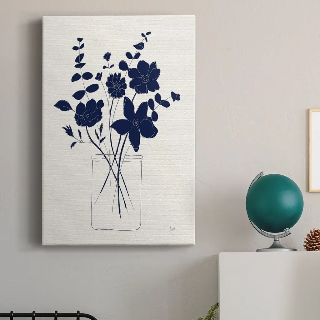 Indigo Sketch Bouquet I Premium Gallery Wrapped Canvas - Ready To Hang - 24x36