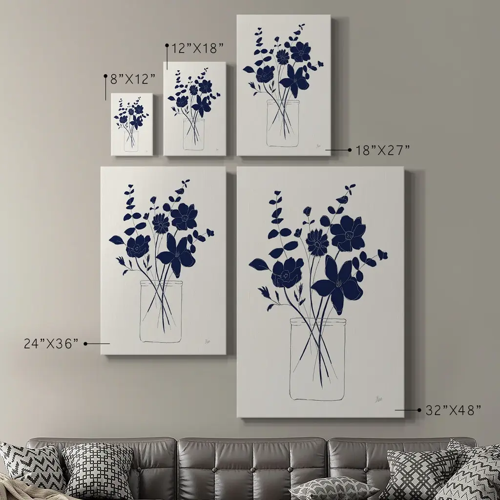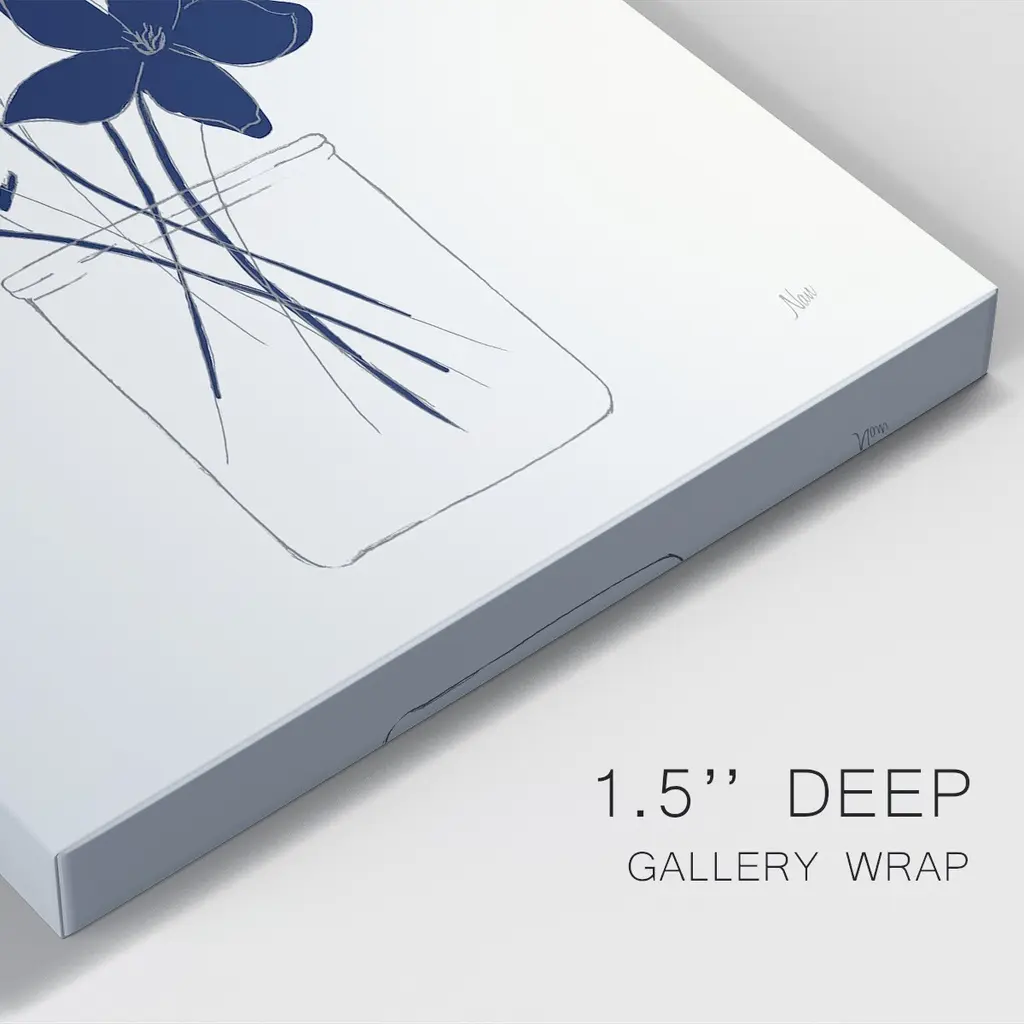 Indigo Sketch Bouquet I Premium Gallery Wrapped Canvas - Ready to Hang A premium hand stretched gallery wrapped canvas print created to last. Featuring a beveled a solid wood stretcher bar, each piece comes ready to hand 6 SIZES AVAILABLE 8''X12'' - Overall Size 12''X18'' - Overall Size 18''X27'' - Overall Size 24''x36'' - Overall Size 32''x48'' - Overall Size 40''x60'' - Overall Size Each piece is made to order. Built to Last Each piece comes ready to hang Solid wood stretcher Fade and Water resistant Made domestically