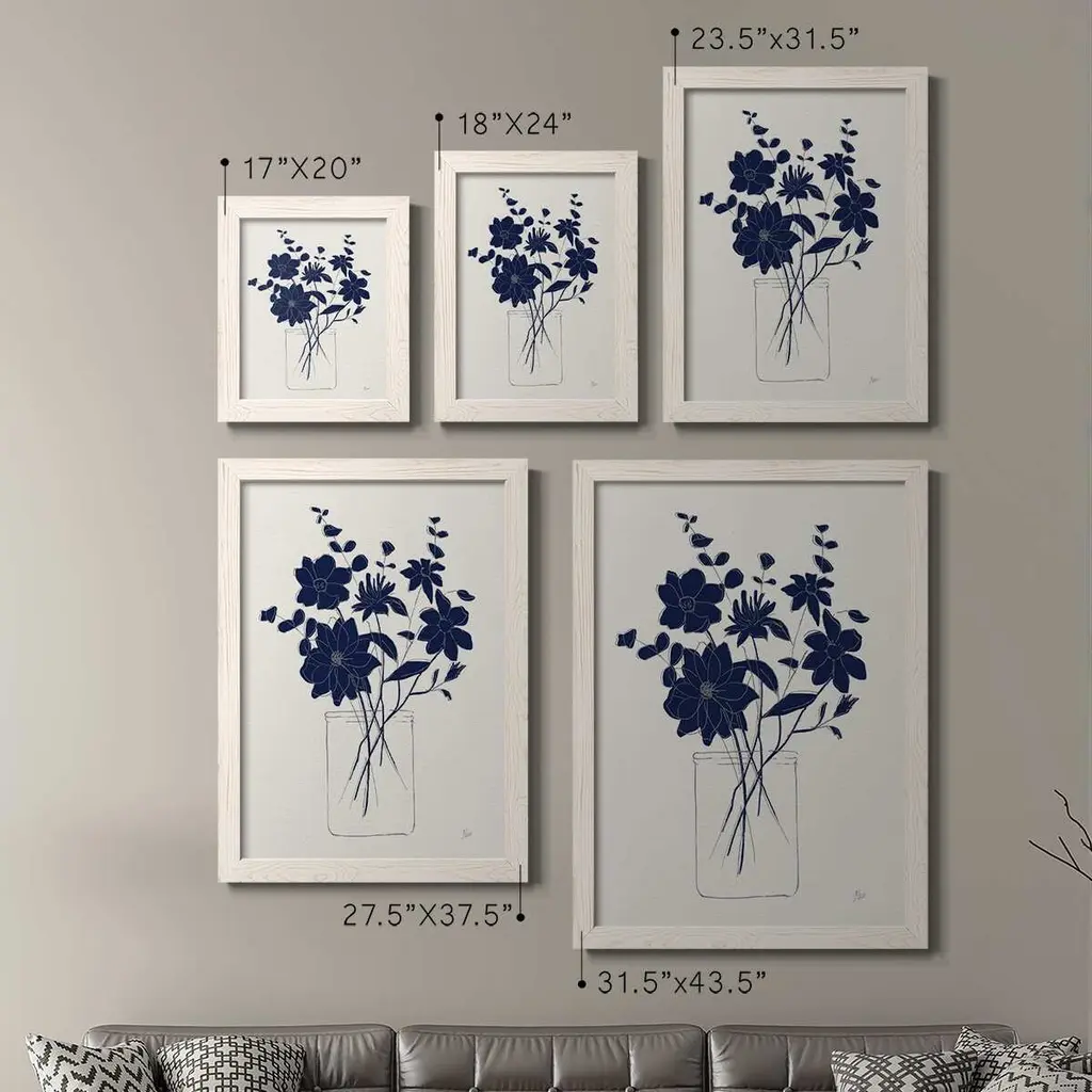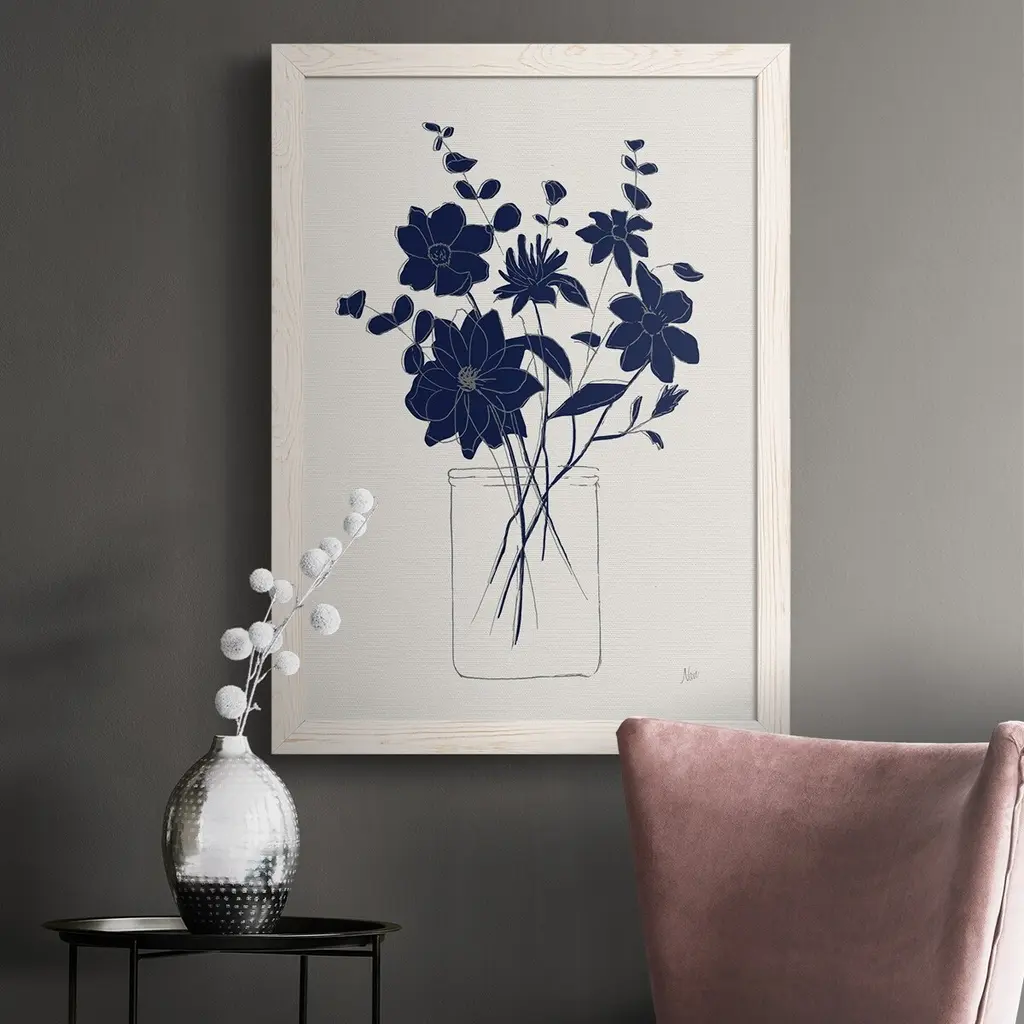Indigo Sketch Bouquet Ii-Premium Framed Canvas - Ready To Hang - 31.5x43.5 - Black