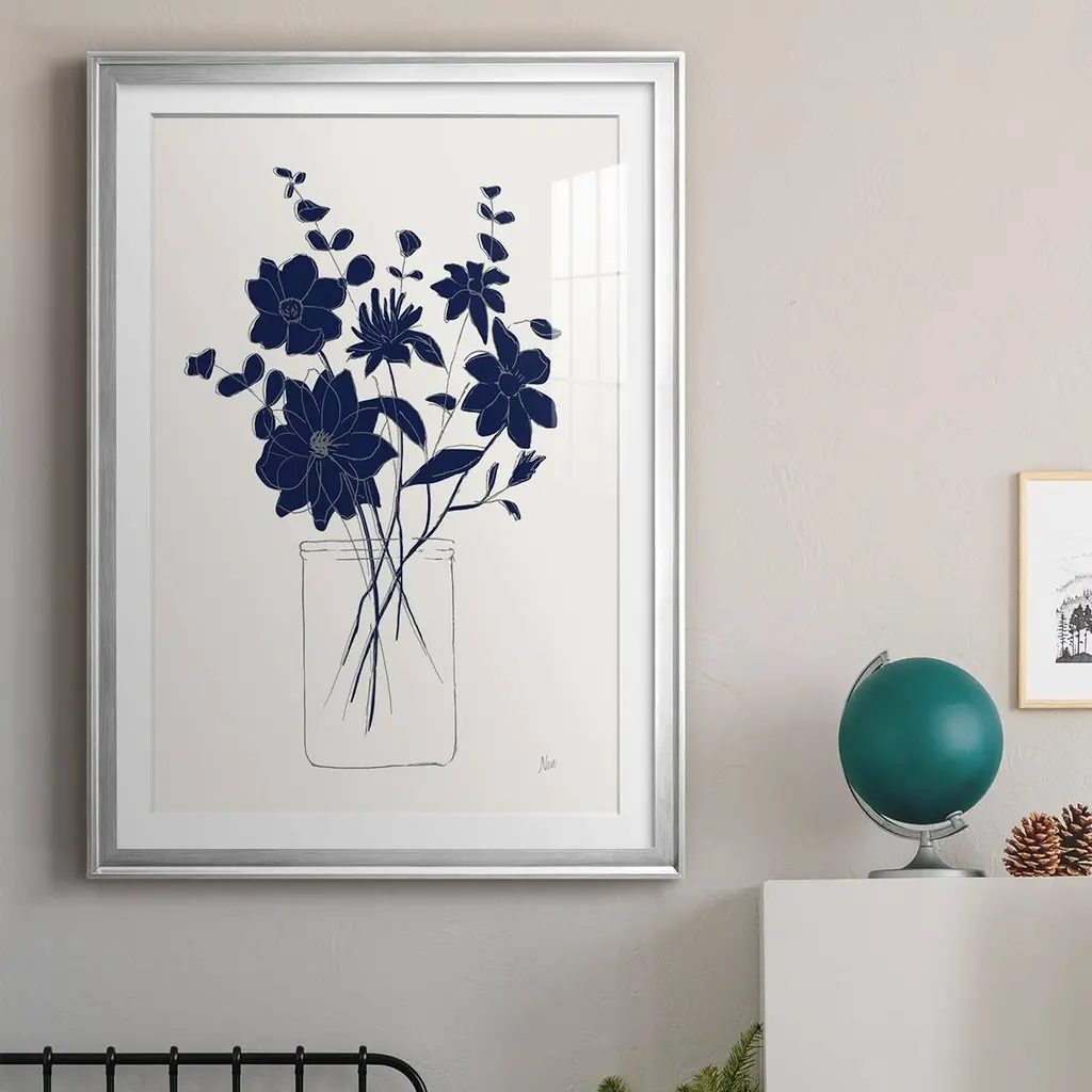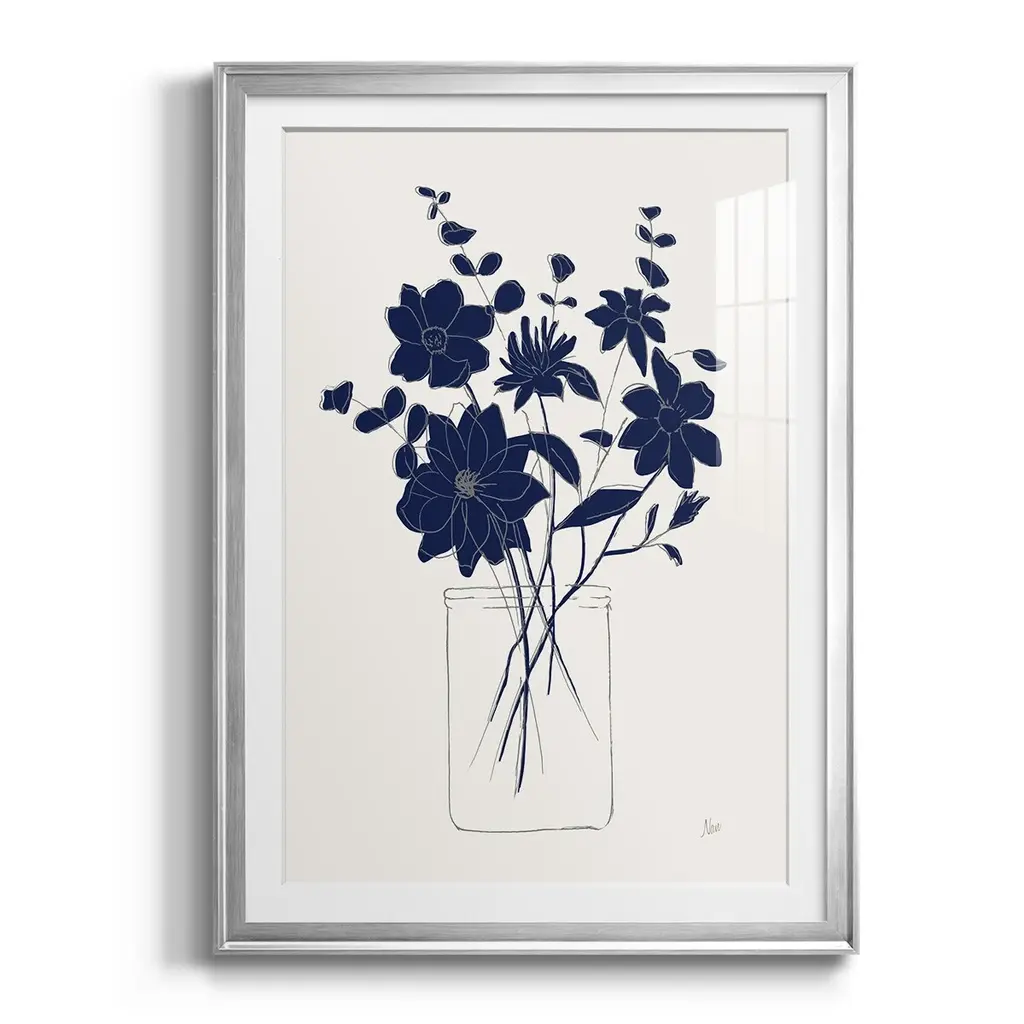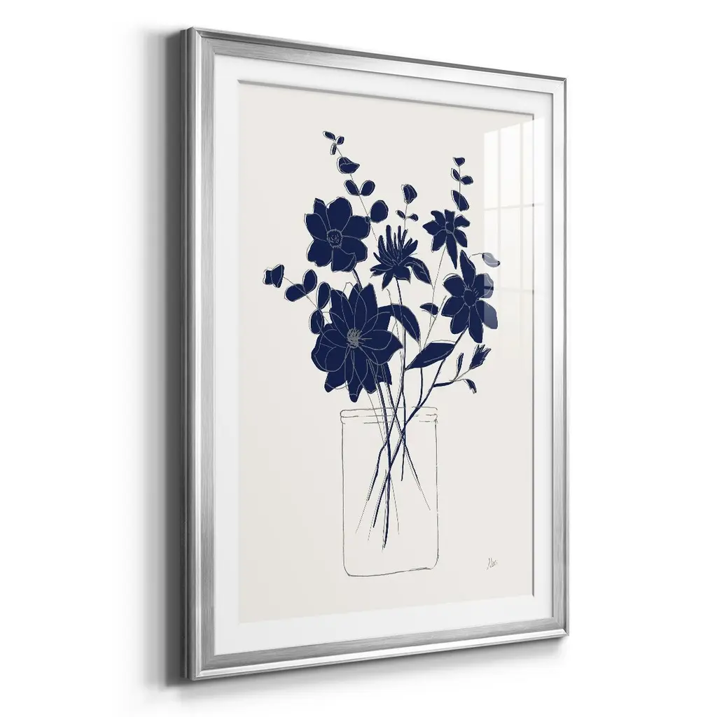 Indigo Sketch Bouquet Ii Premium Framed Print - Ready To Hang - 22.5x30.5 - Silver