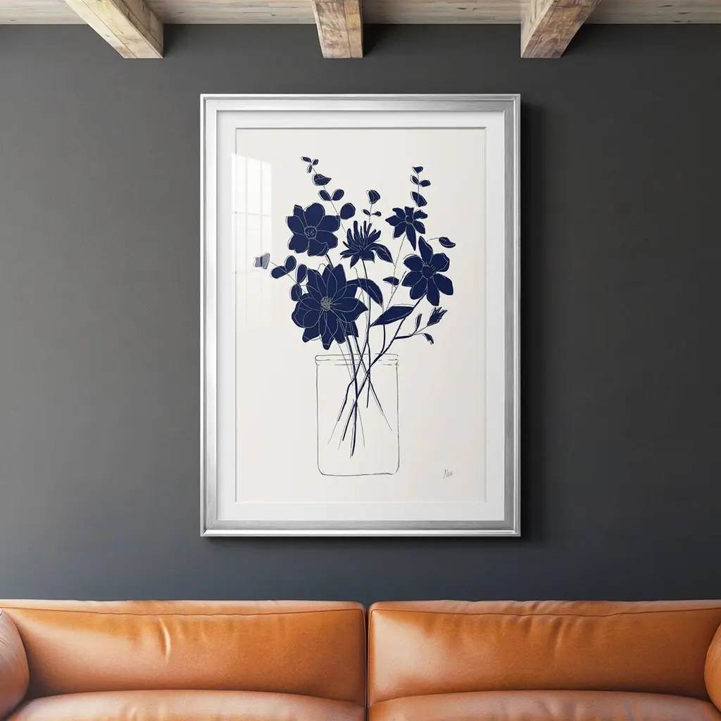 Indigo Sketch Bouquet II Premium Framed Print - Ready to Hang A Premium Framed Print created to last. Framed in distressed wood and available in an array of sizes and colors Featuring a beveled a solid wood stretcher bar, each piece comes ready to hand 4 SIZES AVAILABLE 30.5''X42.5'' - Overall Size 26.5'X36.5'' - Overall Size 22.5''x30.5'' - Overall Size 18.5''x24.5'' - Overall Size Each piece is made to order. Each piece comes with hanging hardware. Made in the USA Ready to Hang Giclee Paper Print Acrylic Glass Beveled Matt Board