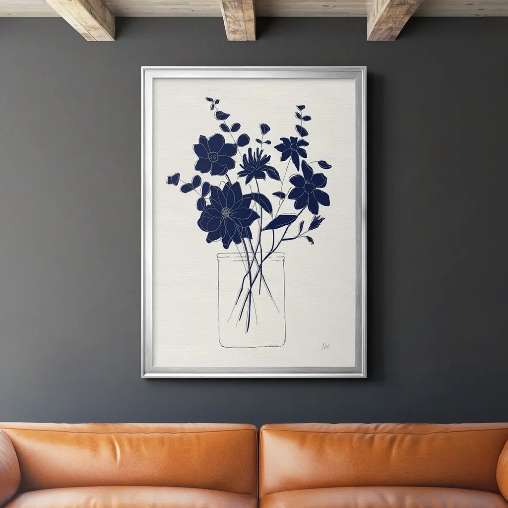Indigo Sketch Bouquet II Premium Framed Print - Ready to Hang A Premium Framed Print created to last. Framed in distressed wood and available in an array of sizes and colors Featuring a beveled a solid wood stretcher bar, each piece comes ready to hand 4 SIZES AVAILABLE 30.5''X42.5'' - Overall Size 26.5'X36.5'' - Overall Size 22.5''x30.5'' - Overall Size 18.5''x24.5'' - Overall Size Each piece is made to order. Each piece comes with hanging hardware. Made in the USA Ready to Hang