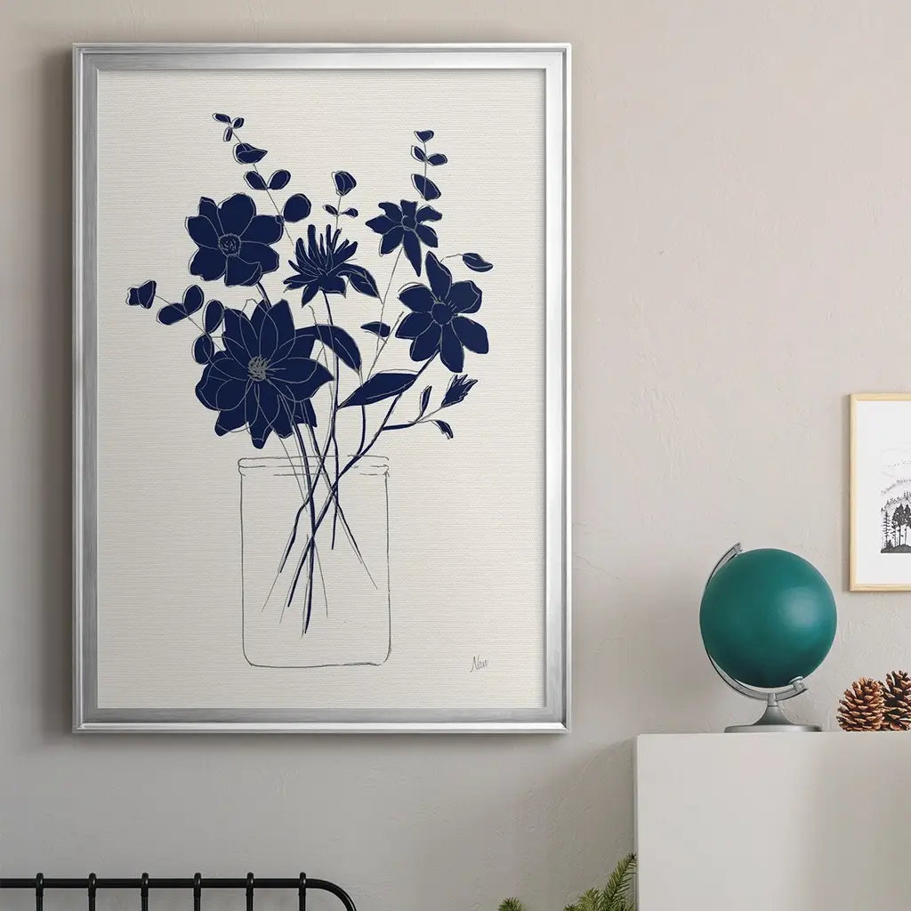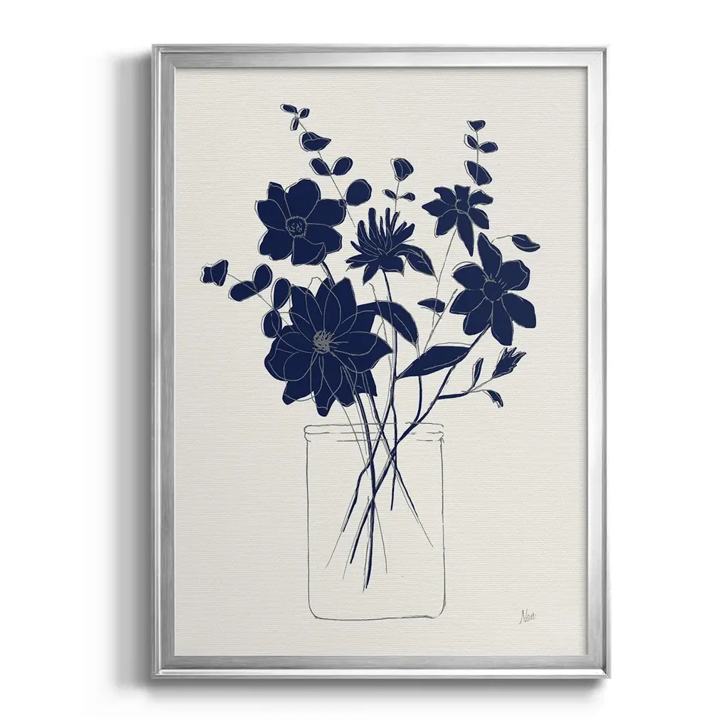 Indigo Sketch Bouquet Ii Premium Framed Print - Ready To Hang - 22.5x30.5 - Silver
