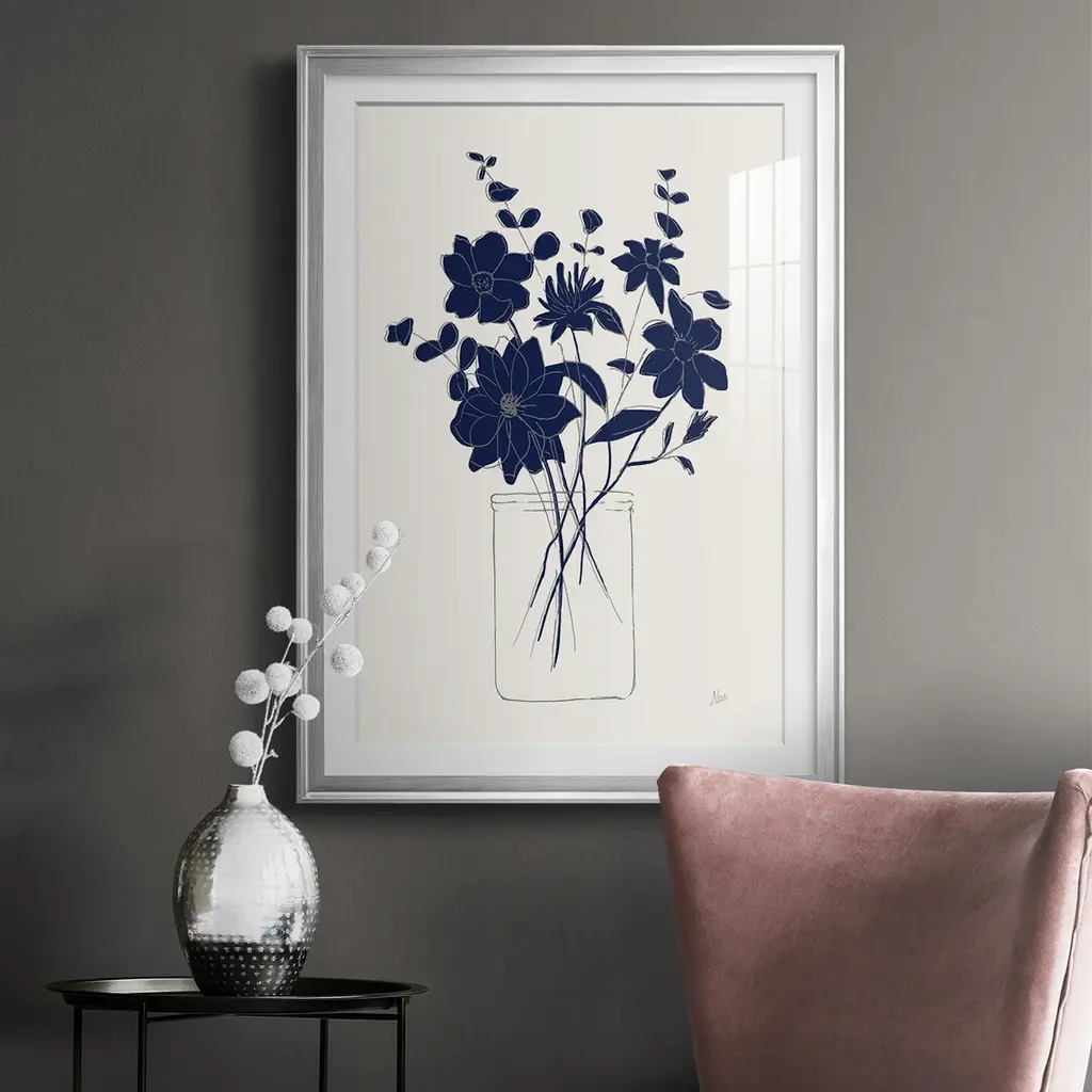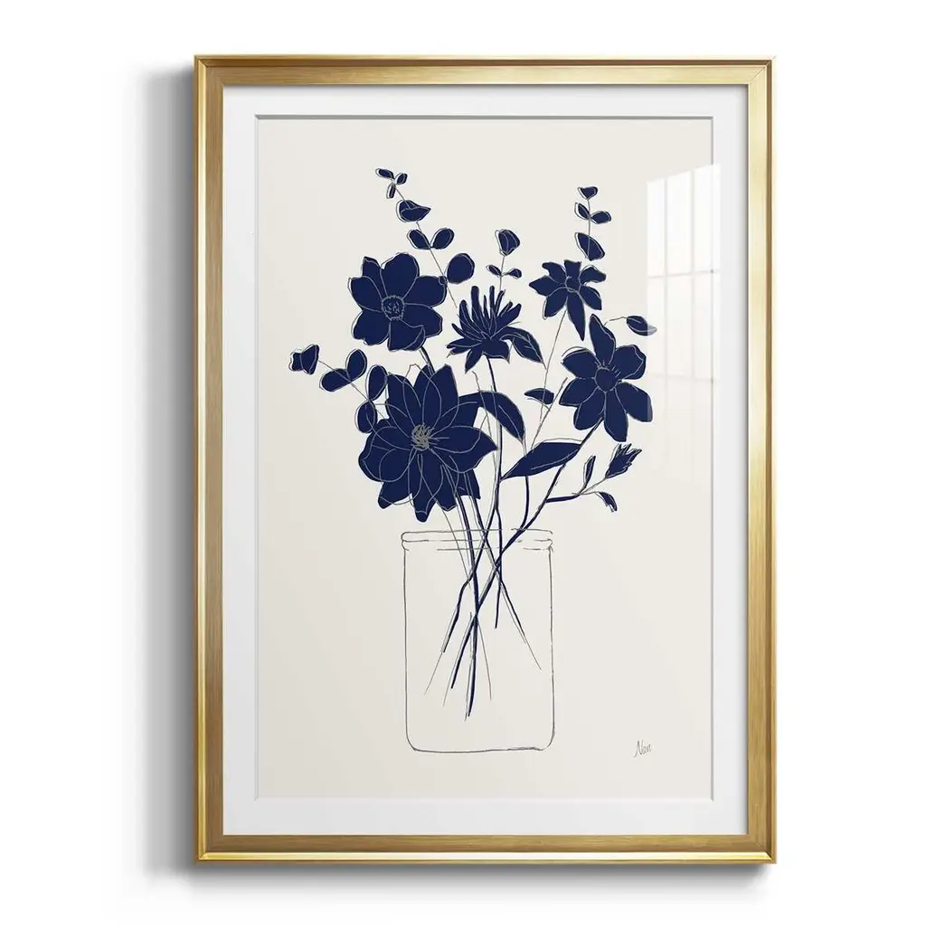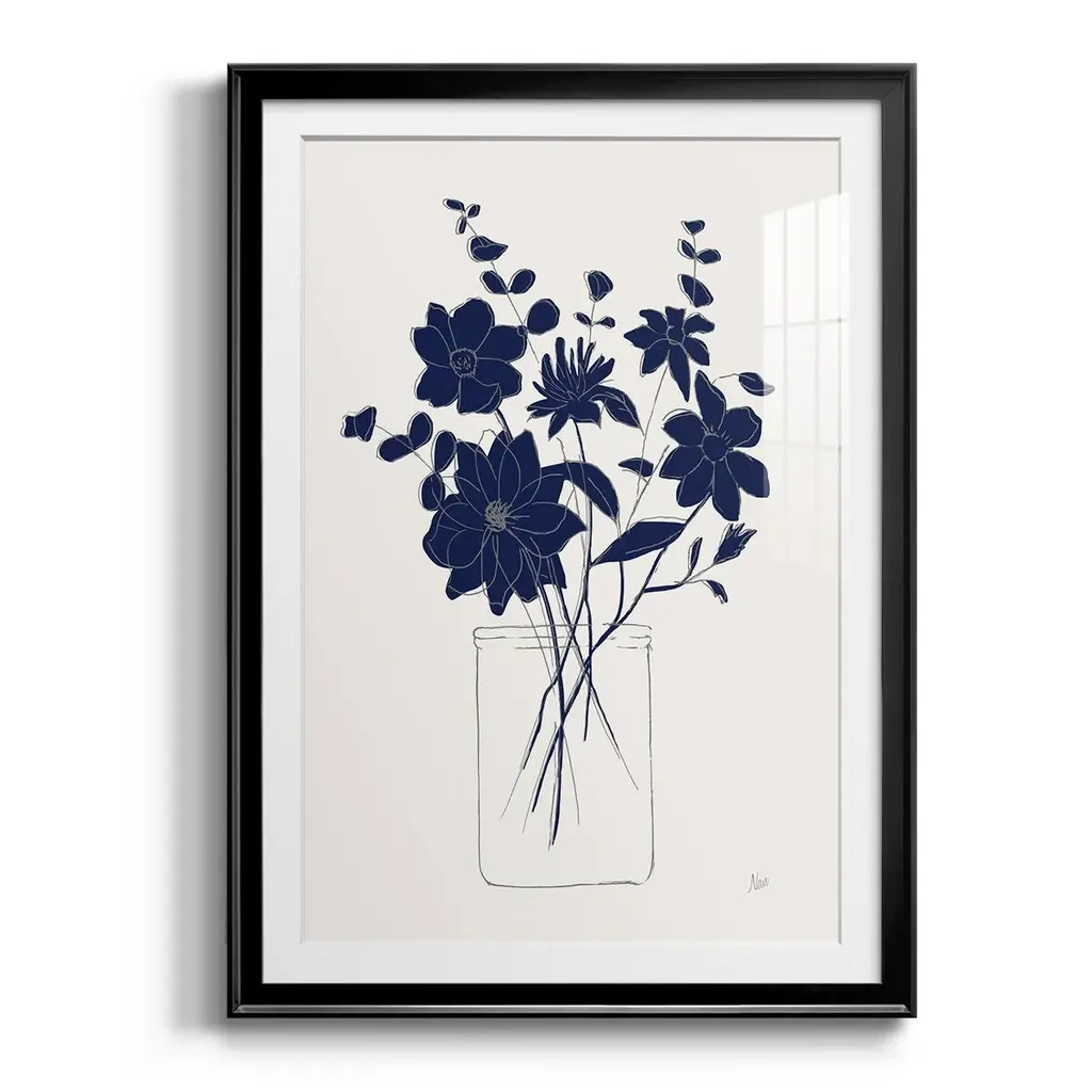 Indigo Sketch Bouquet II Premium Framed Print - Ready to Hang A Premium Framed Print created to last. Framed in distressed wood and available in an array of sizes and colors Featuring a beveled a solid wood stretcher bar, each piece comes ready to hand 4 SIZES AVAILABLE 30.5''X42.5'' - Overall Size 26.5'X36.5'' - Overall Size 22.5''x30.5'' - Overall Size 18.5''x24.5'' - Overall Size Each piece is made to order. Each piece comes with hanging hardware. Made in the USA Ready to Hang Giclee Paper Print Acrylic Glass Beveled Matt Board