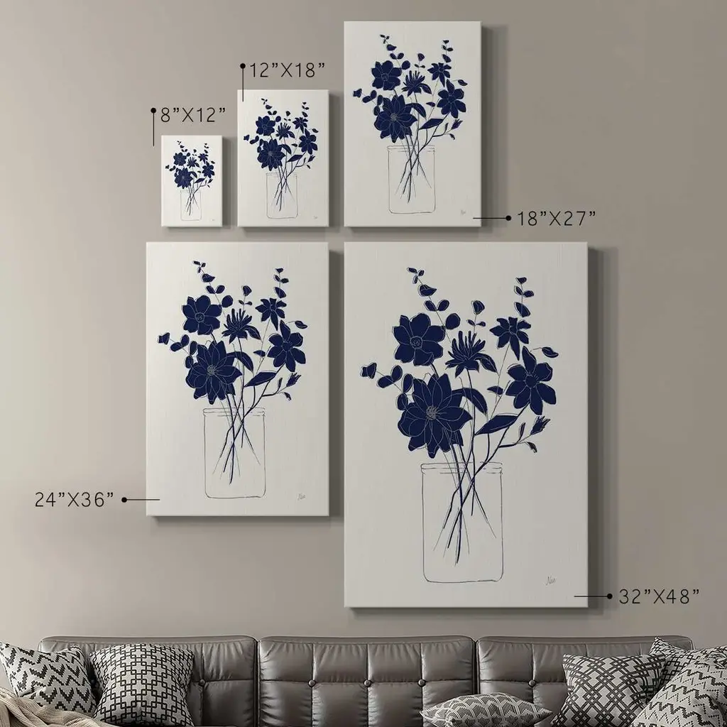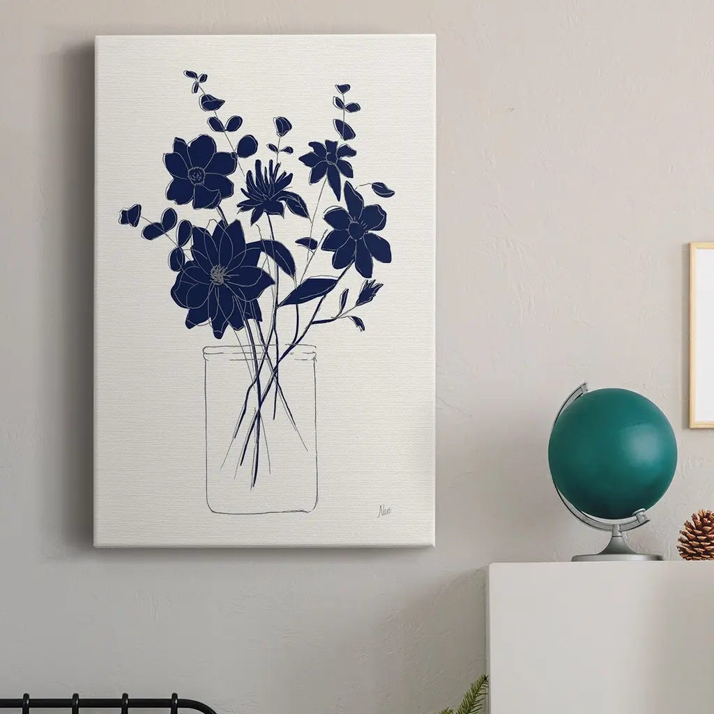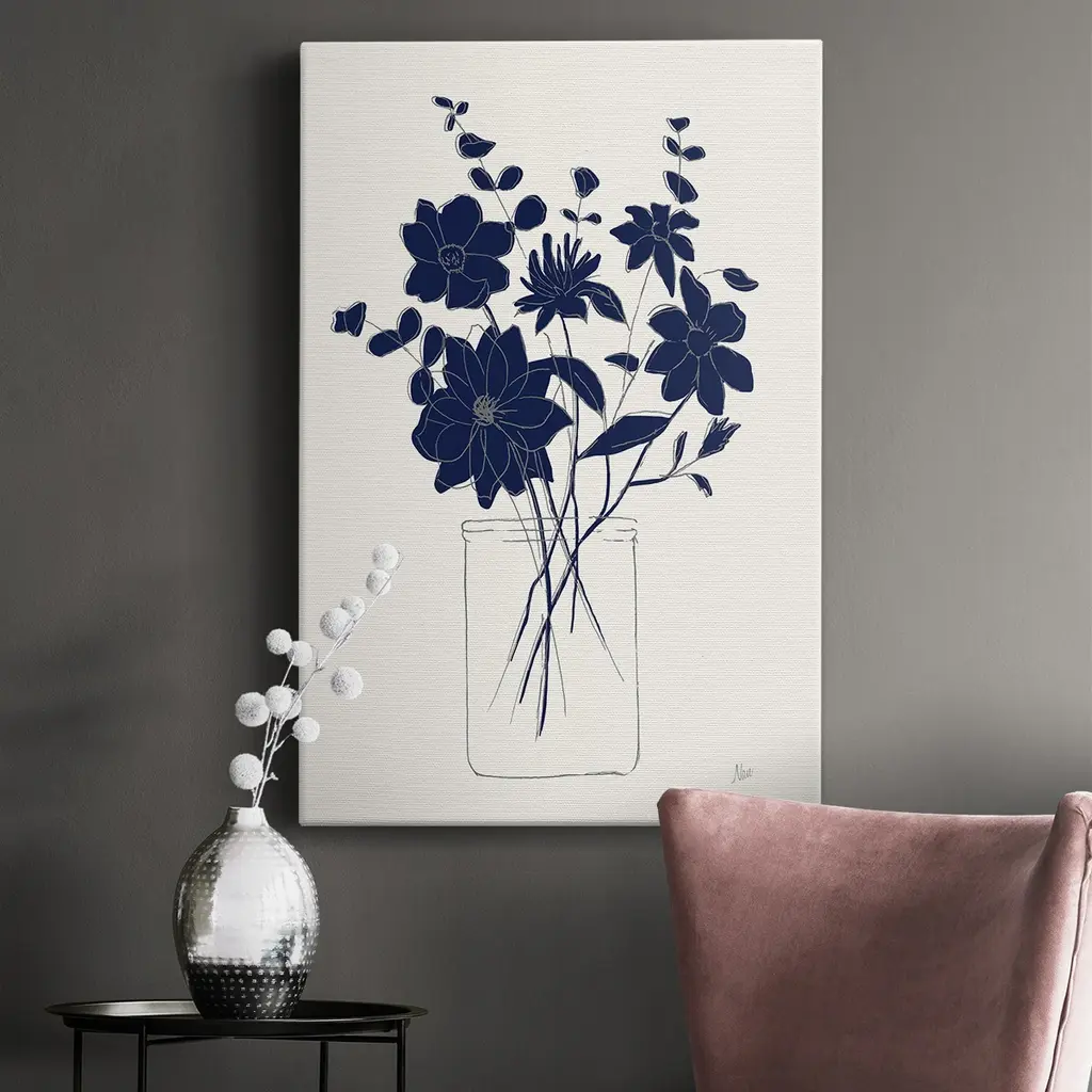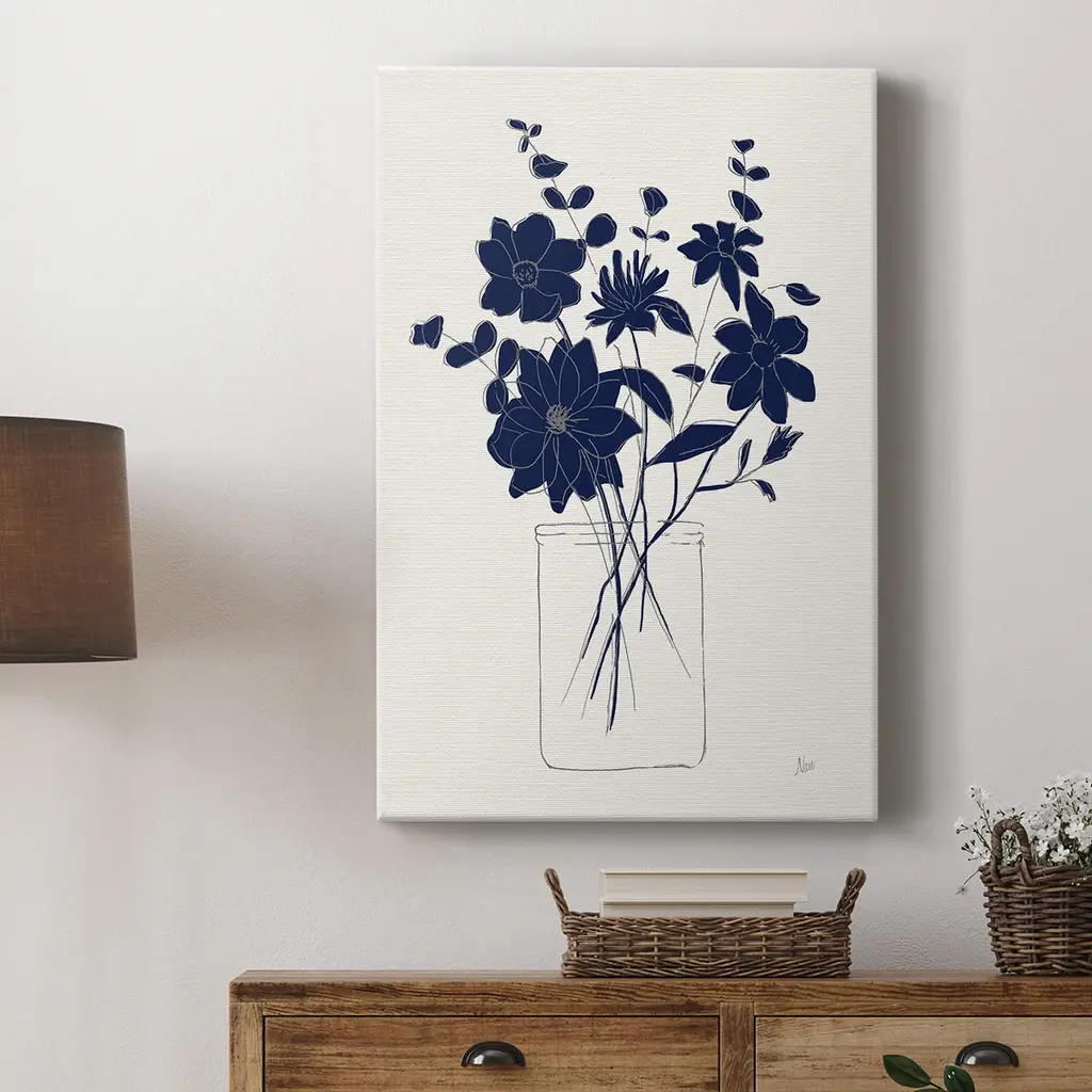 Indigo Sketch Bouquet II Premium Gallery Wrapped Canvas - Ready to Hang A premium hand stretched gallery wrapped canvas print created to last. Featuring a beveled a solid wood stretcher bar, each piece comes ready to hand 6 SIZES AVAILABLE 8''X12'' - Overall Size 12''X18'' - Overall Size 18''X27'' - Overall Size 24''x36'' - Overall Size 32''x48'' - Overall Size 40''x60'' - Overall Size Each piece is made to order. Built to Last Each piece comes ready to hang Solid wood stretcher Fade and Water resistant Made domestically