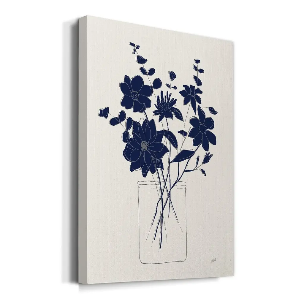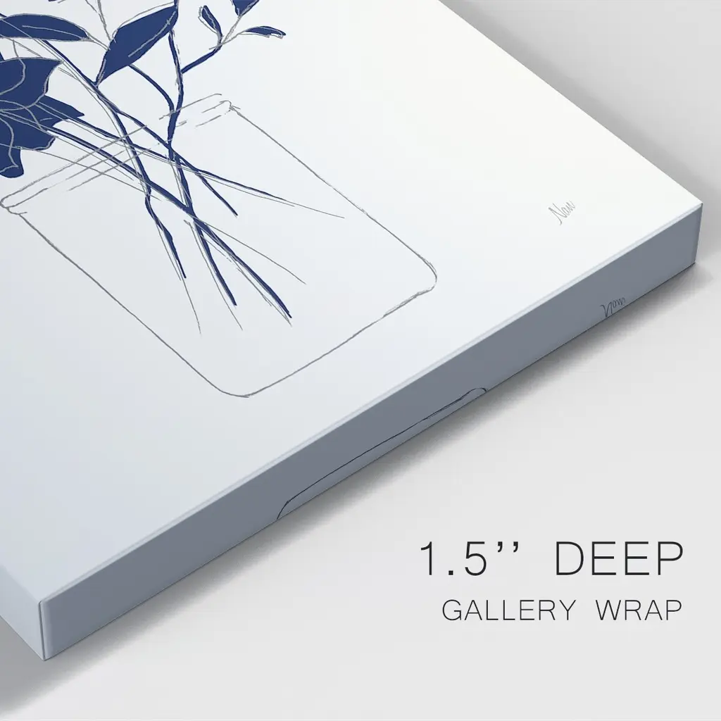 Indigo Sketch Bouquet II Premium Gallery Wrapped Canvas - Ready to Hang A premium hand stretched gallery wrapped canvas print created to last. Featuring a beveled a solid wood stretcher bar, each piece comes ready to hand 6 SIZES AVAILABLE 8''X12'' - Overall Size 12''X18'' - Overall Size 18''X27'' - Overall Size 24''x36'' - Overall Size 32''x48'' - Overall Size 40''x60'' - Overall Size Each piece is made to order. Built to Last Each piece comes ready to hang Solid wood stretcher Fade and Water resistant Made domestically