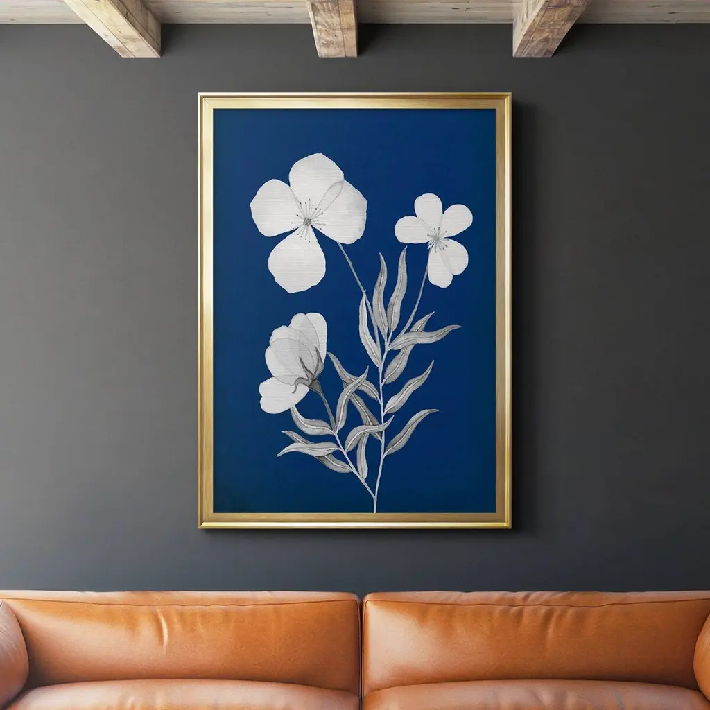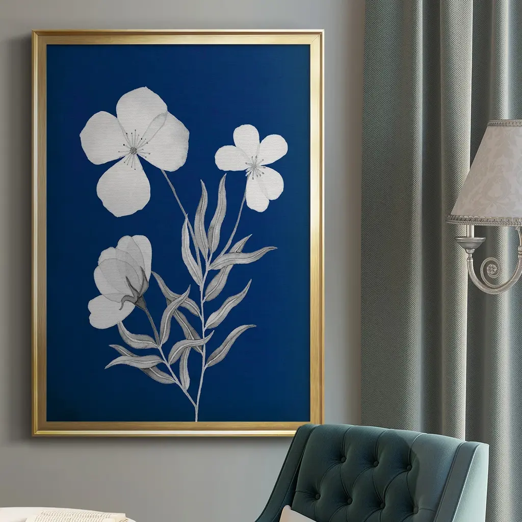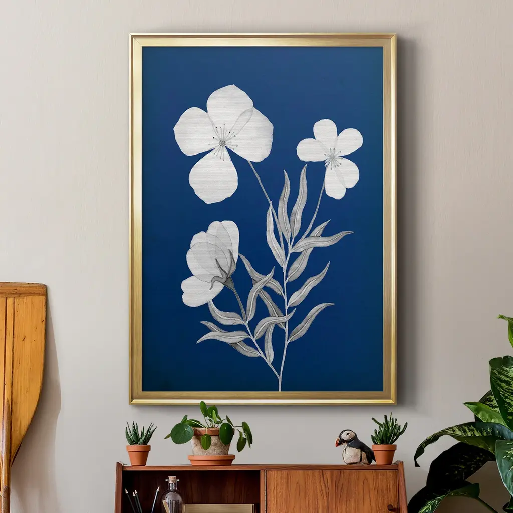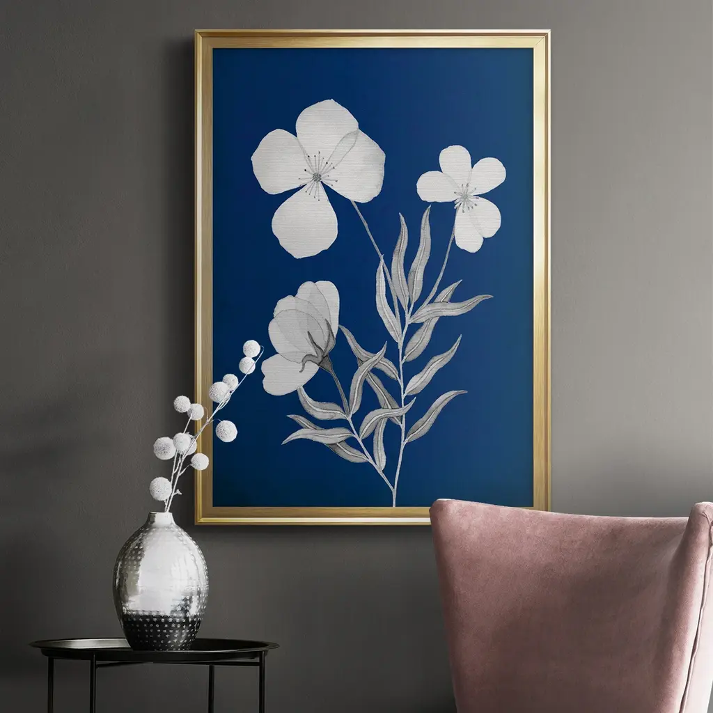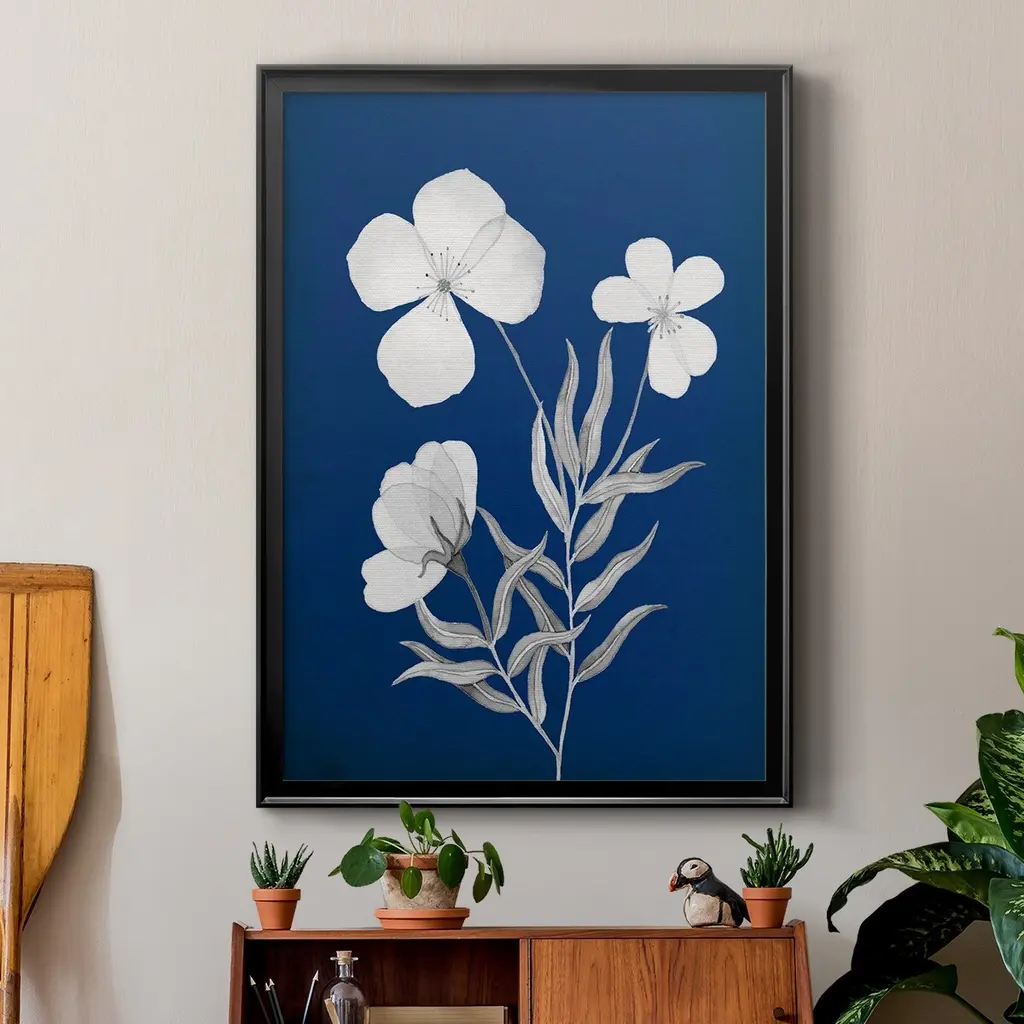 Indigo Sketch I Premium Framed Print - Ready to Hang A Premium Framed Print created to last. Framed in distressed wood and available in an array of sizes and colors Featuring a beveled a solid wood stretcher bar, each piece comes ready to hand 4 SIZES AVAILABLE 30.5''X42.5'' - Overall Size 26.5'X36.5'' - Overall Size 22.5''x30.5'' - Overall Size 18.5''x24.5'' - Overall Size Each piece is made to order. Each piece comes with hanging hardware. Made in the USA Ready to Hang