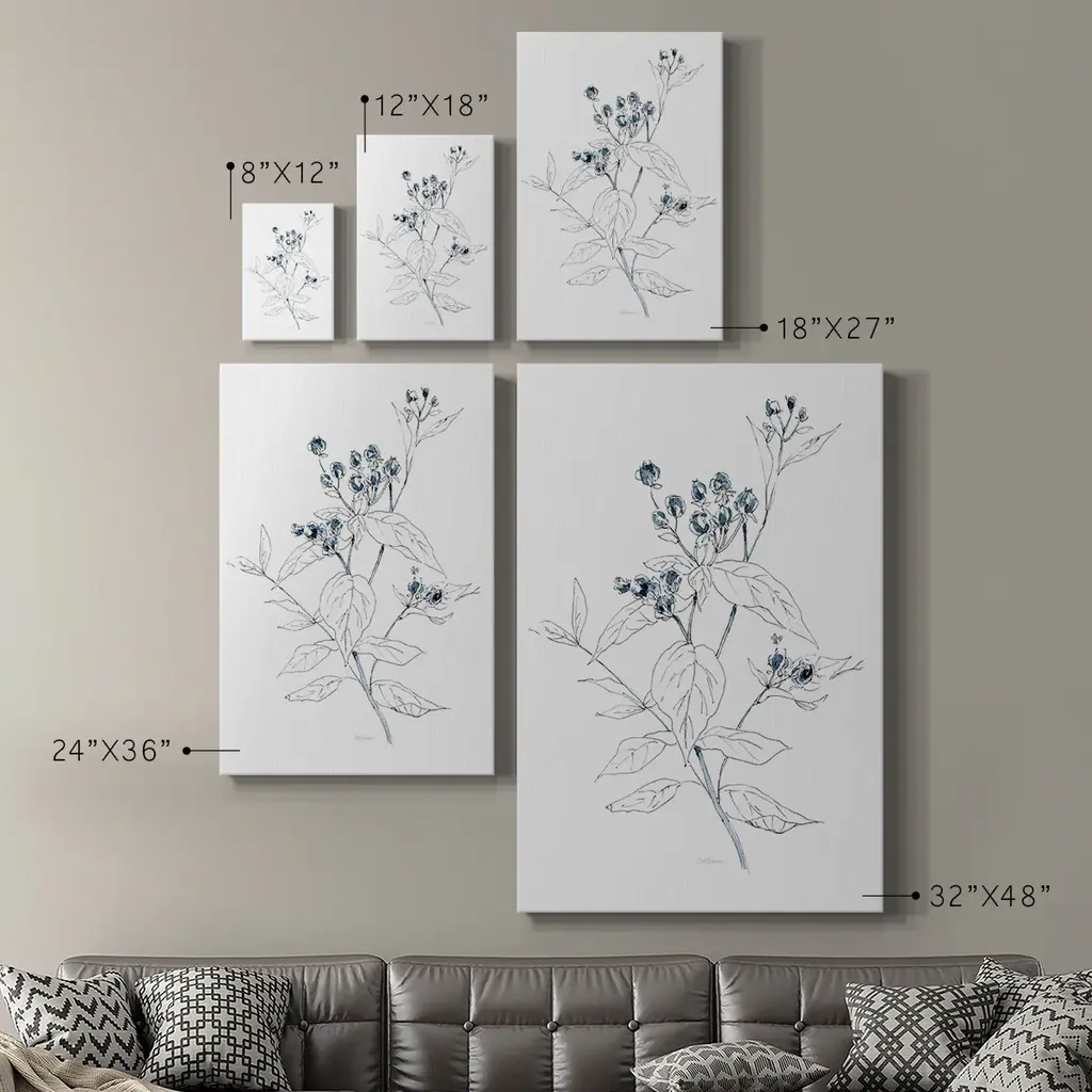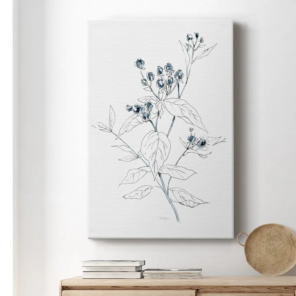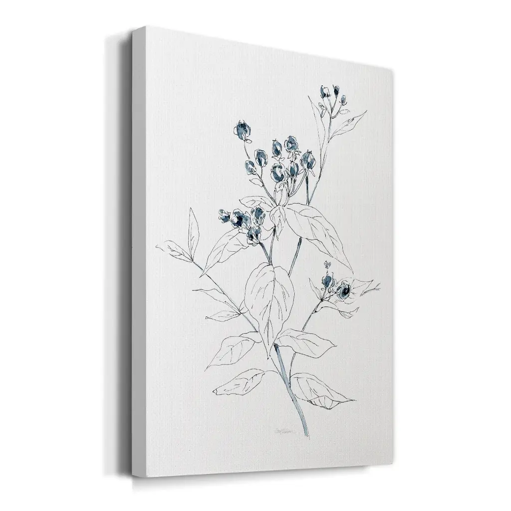 Indigo Sketch I Premium Gallery Wrapped Canvas - Ready to Hang A premium hand stretched gallery wrapped canvas print created to last. Featuring a beveled a solid wood stretcher bar, each piece comes ready to hand 6 SIZES AVAILABLE 8''X12'' - Overall Size 12''X18'' - Overall Size 18''X27'' - Overall Size 24''x36'' - Overall Size 32''x48'' - Overall Size 40''x60'' - Overall Size Each piece is made to order. Built to Last Each piece comes ready to hang Solid wood stretcher Fade and Water resistant Made domestically