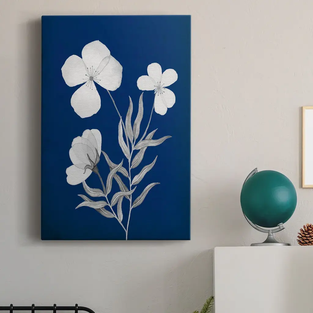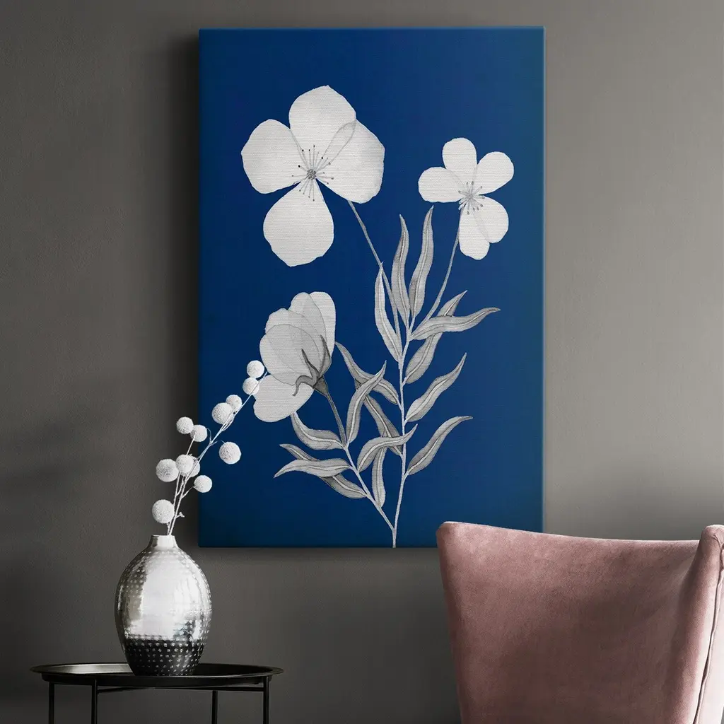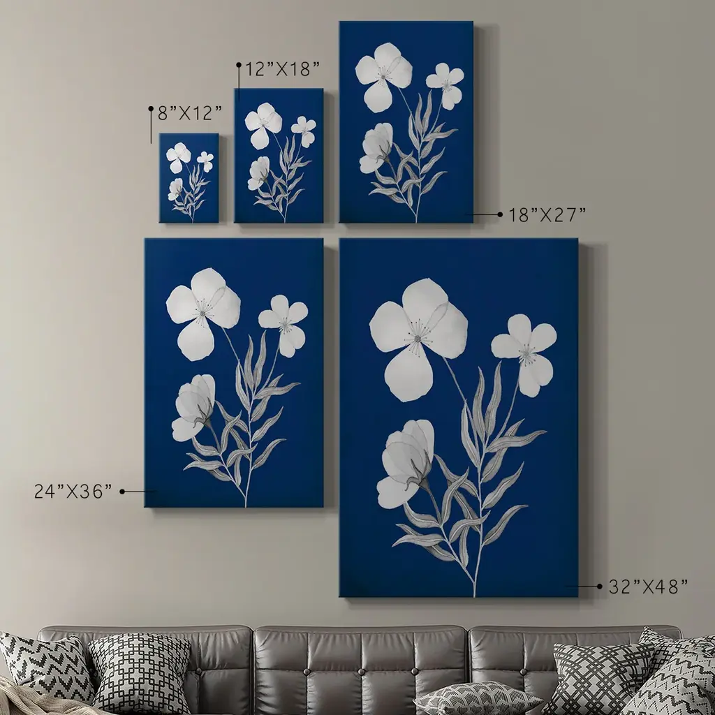 Indigo Sketch I Premium Gallery Wrapped Canvas - Ready to Hang A premium hand stretched gallery wrapped canvas print created to last. Featuring a beveled a solid wood stretcher bar, each piece comes ready to hand 6 SIZES AVAILABLE 8''X12'' - Overall Size 12''X18'' - Overall Size 18''X27'' - Overall Size 24''x36'' - Overall Size 32''x48'' - Overall Size 40''x60'' - Overall Size Each piece is made to order. Built to Last Each piece comes ready to hang Solid wood stretcher Fade and Water resistant Made domestically