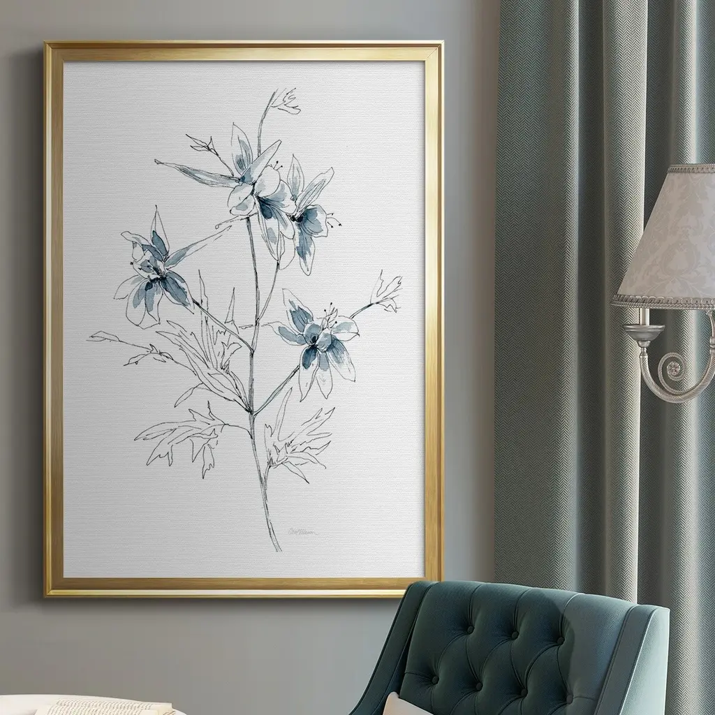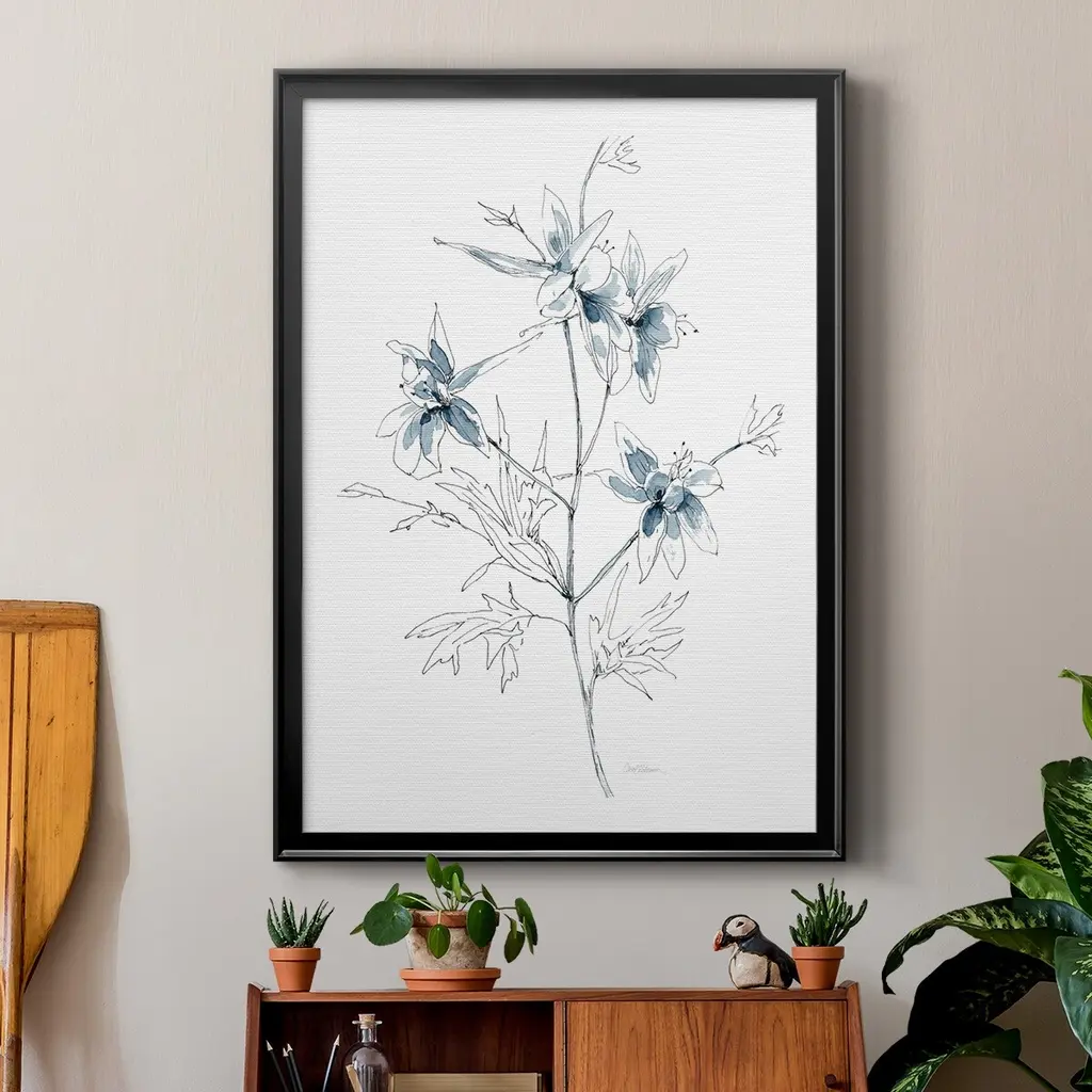 Indigo Sketch II Premium Framed Print - Ready to Hang A Premium Framed Print created to last. Framed in distressed wood and available in an array of sizes and colors Featuring a beveled a solid wood stretcher bar, each piece comes ready to hand 4 SIZES AVAILABLE 30.5''X42.5'' - Overall Size 26.5'X36.5'' - Overall Size 22.5''x30.5'' - Overall Size 18.5''x24.5'' - Overall Size Each piece is made to order. Each piece comes with hanging hardware. Made in the USA Ready to Hang