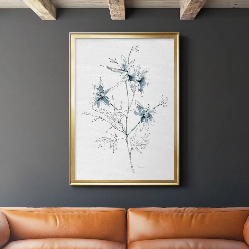 Indigo Sketch II Premium Framed Print - Ready to Hang A Premium Framed Print created to last. Framed in distressed wood and available in an array of sizes and colors Featuring a beveled a solid wood stretcher bar, each piece comes ready to hand 4 SIZES AVAILABLE 30.5''X42.5'' - Overall Size 26.5'X36.5'' - Overall Size 22.5''x30.5'' - Overall Size 18.5''x24.5'' - Overall Size Each piece is made to order. Each piece comes with hanging hardware. Made in the USA Ready to Hang