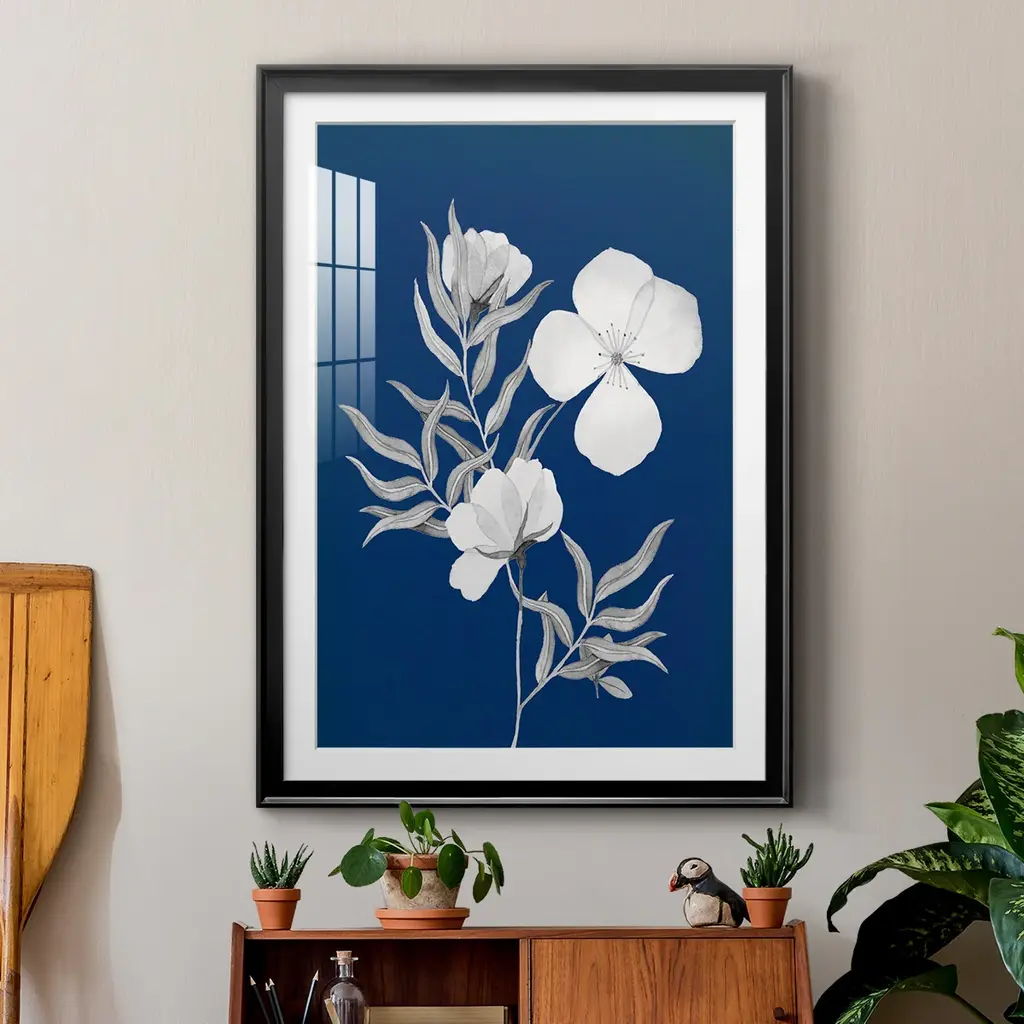 Indigo Sketch II Premium Framed Print - Ready to Hang A Premium Framed Print created to last. Framed in distressed wood and available in an array of sizes and colors Featuring a beveled a solid wood stretcher bar, each piece comes ready to hand 4 SIZES AVAILABLE 30.5''X42.5'' - Overall Size 26.5'X36.5'' - Overall Size 22.5''x30.5'' - Overall Size 18.5''x24.5'' - Overall Size Each piece is made to order. Each piece comes with hanging hardware. Made in the USA Ready to Hang Giclee Paper Print Acrylic Glass Beveled Matt Board