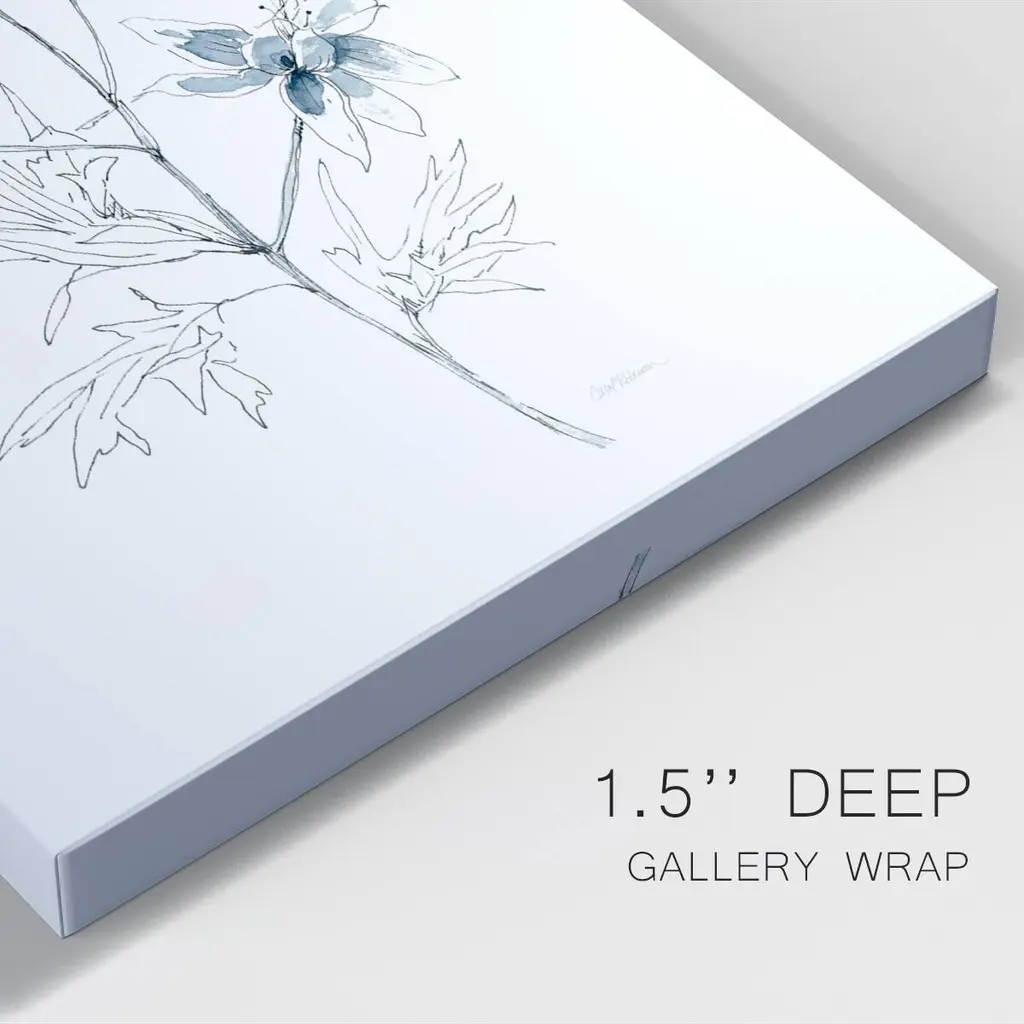 Indigo Sketch II Premium Gallery Wrapped Canvas - Ready to Hang A premium hand stretched gallery wrapped canvas print created to last. Featuring a beveled a solid wood stretcher bar, each piece comes ready to hand 6 SIZES AVAILABLE 8''X12'' - Overall Size 12''X18'' - Overall Size 18''X27'' - Overall Size 24''x36'' - Overall Size 32''x48'' - Overall Size 40''x60'' - Overall Size Each piece is made to order. Built to Last Each piece comes ready to hang Solid wood stretcher Fade and Water resistant Made domestically