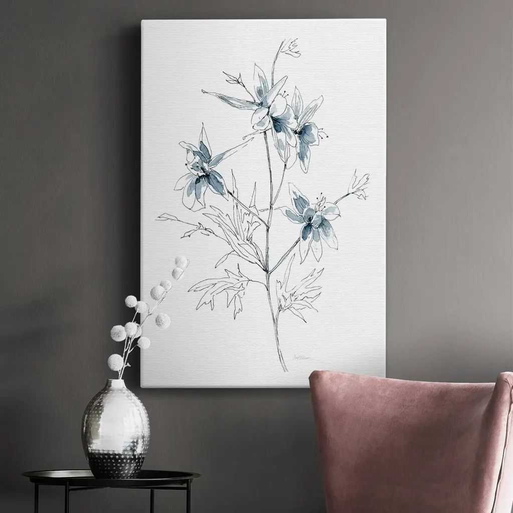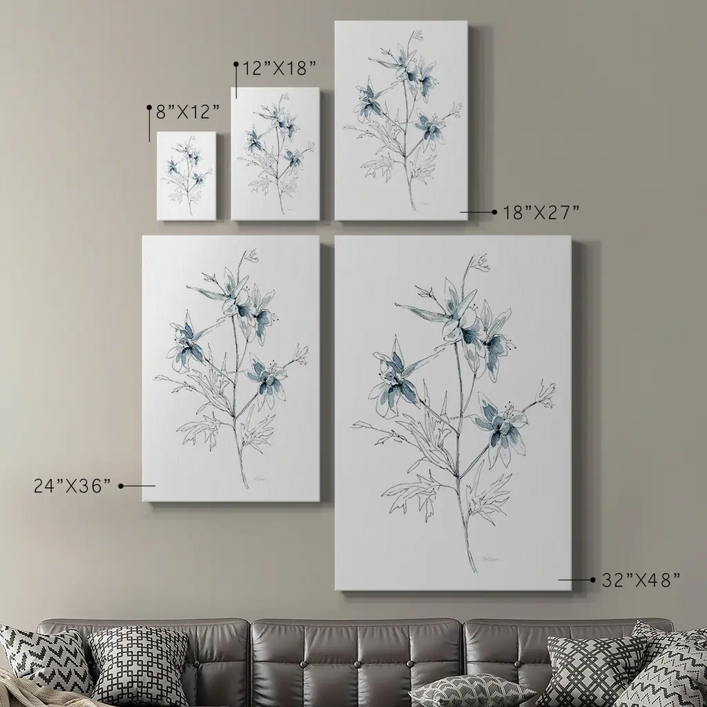 Indigo Sketch II Premium Gallery Wrapped Canvas - Ready to Hang A premium hand stretched gallery wrapped canvas print created to last. Featuring a beveled a solid wood stretcher bar, each piece comes ready to hand 6 SIZES AVAILABLE 8''X12'' - Overall Size 12''X18'' - Overall Size 18''X27'' - Overall Size 24''x36'' - Overall Size 32''x48'' - Overall Size 40''x60'' - Overall Size Each piece is made to order. Built to Last Each piece comes ready to hang Solid wood stretcher Fade and Water resistant Made domestically