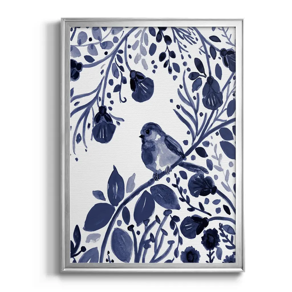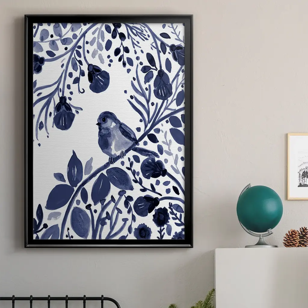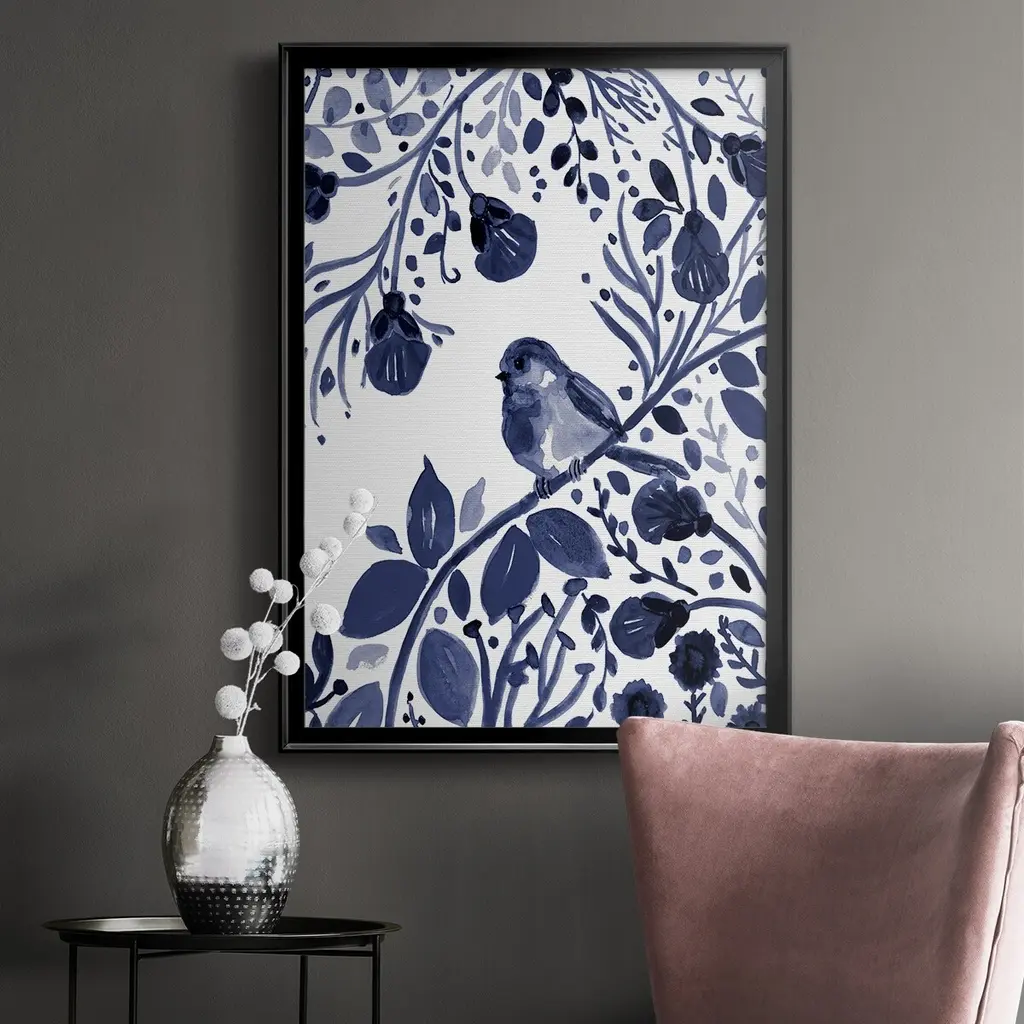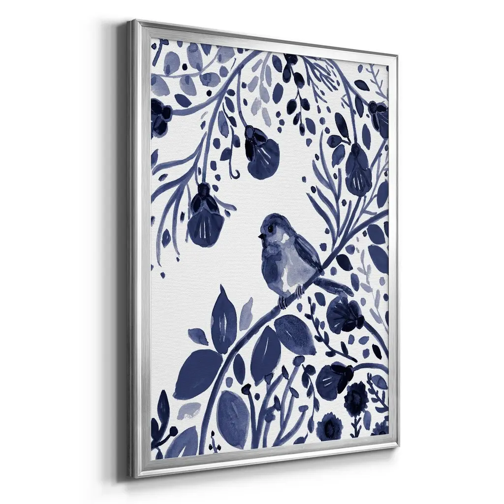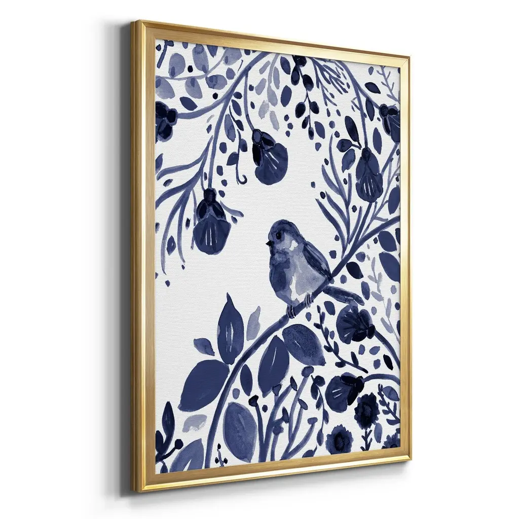 Indigo Song II Premium Framed Print - Ready to Hang A Premium Framed Print created to last. Framed in distressed wood and available in an array of sizes and colors Featuring a beveled a solid wood stretcher bar, each piece comes ready to hand 4 SIZES AVAILABLE 30.5''X42.5'' - Overall Size 26.5'X36.5'' - Overall Size 22.5''x30.5'' - Overall Size 18.5''x24.5'' - Overall Size Each piece is made to order. Each piece comes with hanging hardware. Made in the USA Ready to Hang