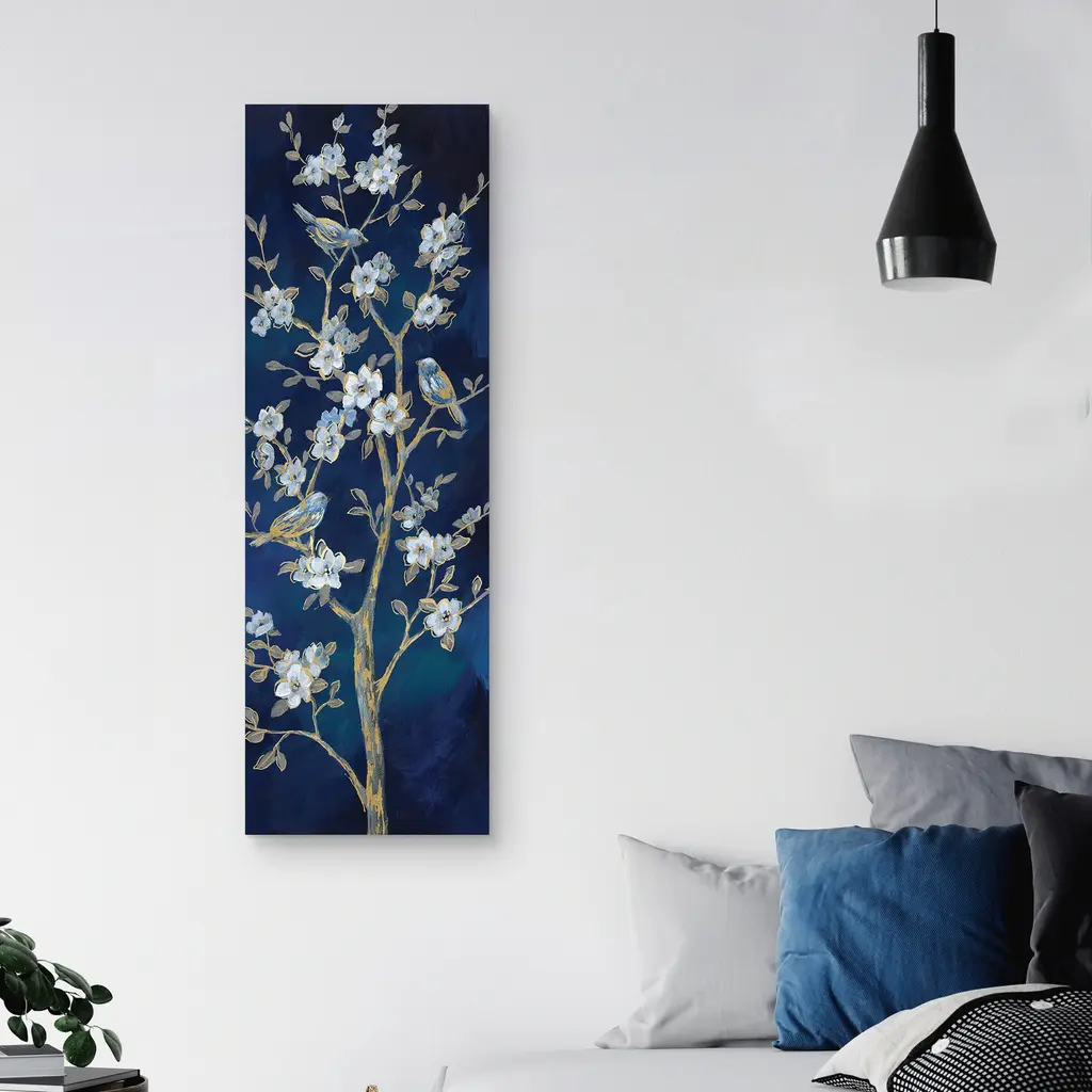 Indigo Spring II by Nan is produced with printing that covers the entirety of the canvas for a sleek and stylish museum-quality look. Our framed prints are made by expert craftsmen who strive to make each canvas the masterpiece