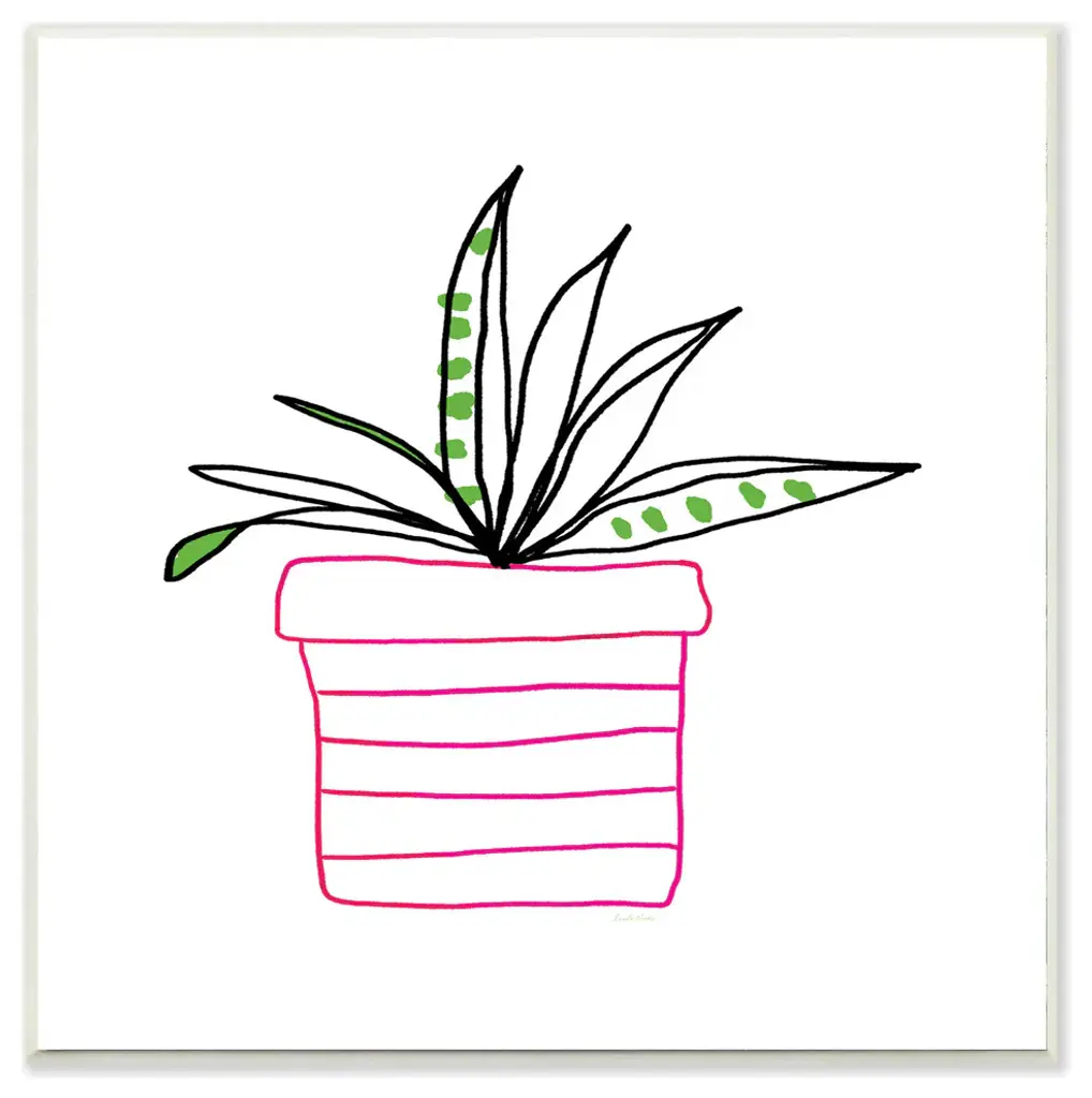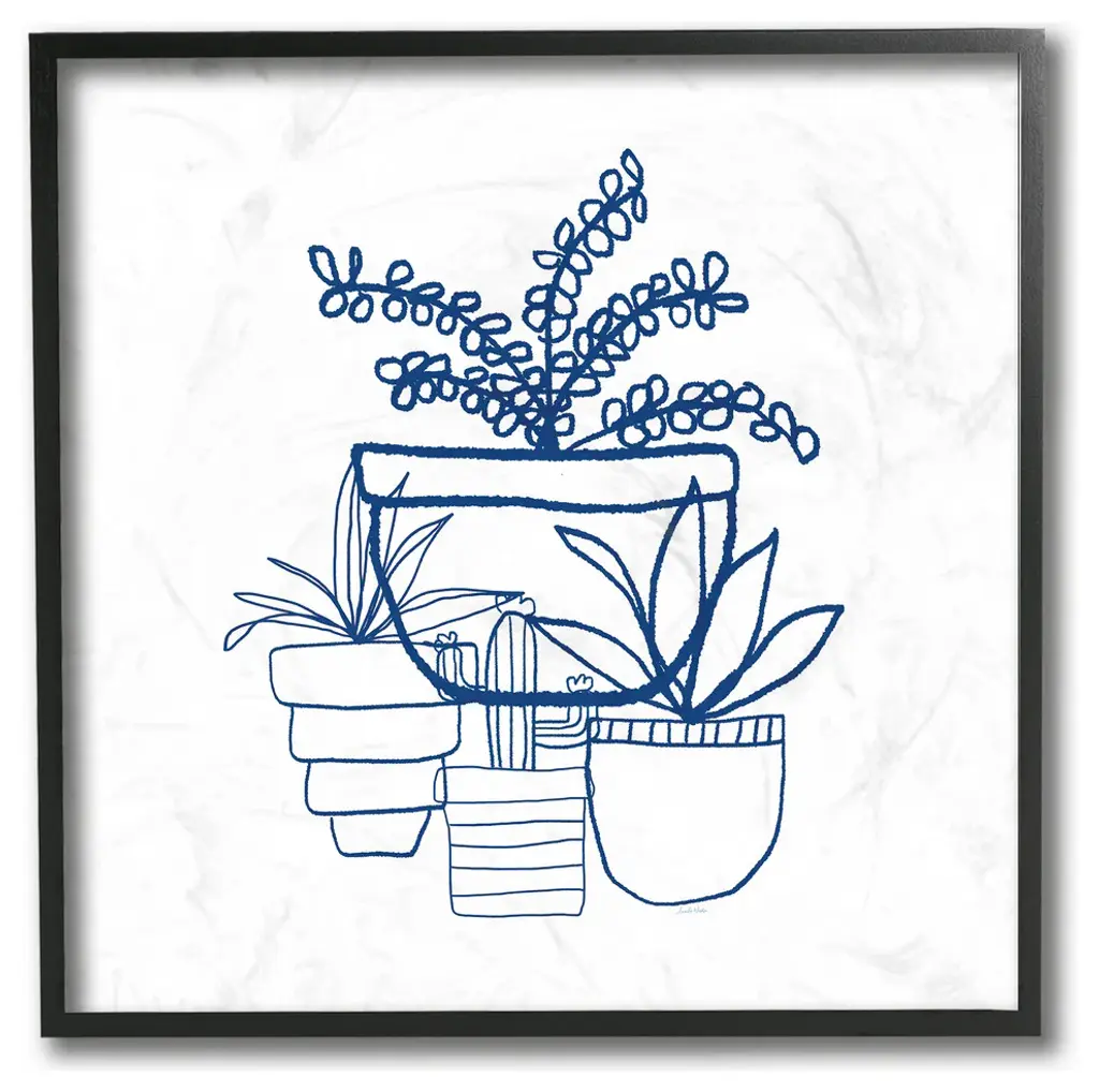 Indigo Succulent Line Drawing Wall Plaque Art, 12x12