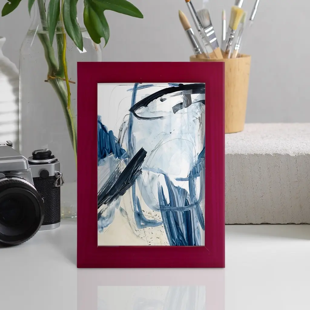 Indigo Swash I -EZ SWITCH Framed Print w/glass-Cherry Red A delightful, framed print. Featuring a solid wood frame with real wood glass. This premium print is giclee quality. In addition, every frame features a removable back and table top stand. This allows you to change your art in the future or to just stand the art on a table for a new look. We are sure you'll enjoy our new series of EZ SWITCH Framed Art. Solid Wood Frame Real Glass Removable / Replaceable Art Built in Tabletop Stand Sizes range from 4x6 up to 12x15 - buy just one or pair them up as sets as you see fit.