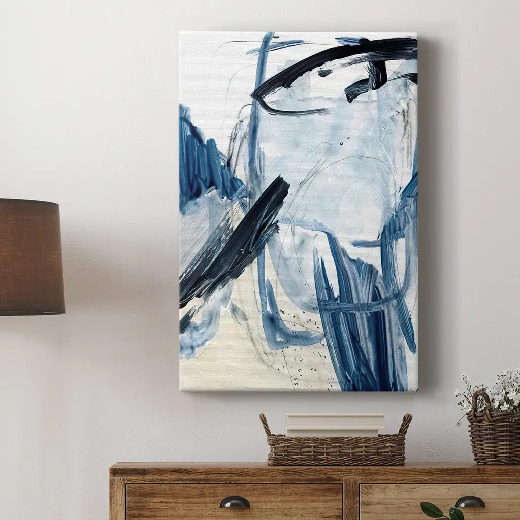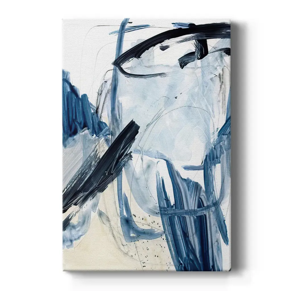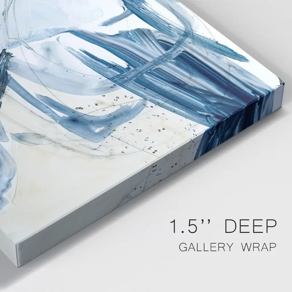 Indigo Swash I Premium Gallery Wrapped Canvas - Ready to Hang A premium hand stretched gallery wrapped canvas print created to last. Featuring a beveled a solid wood stretcher bar, each piece comes ready to hand 6 SIZES AVAILABLE 8''X12'' - Overall Size 12''X18'' - Overall Size 18''X27'' - Overall Size 24''x36'' - Overall Size 32''x48'' - Overall Size 40''x60'' - Overall Size Each piece is made to order. Built to Last Each piece comes ready to hang Solid wood stretcher Fade and Water resistant Made domestically