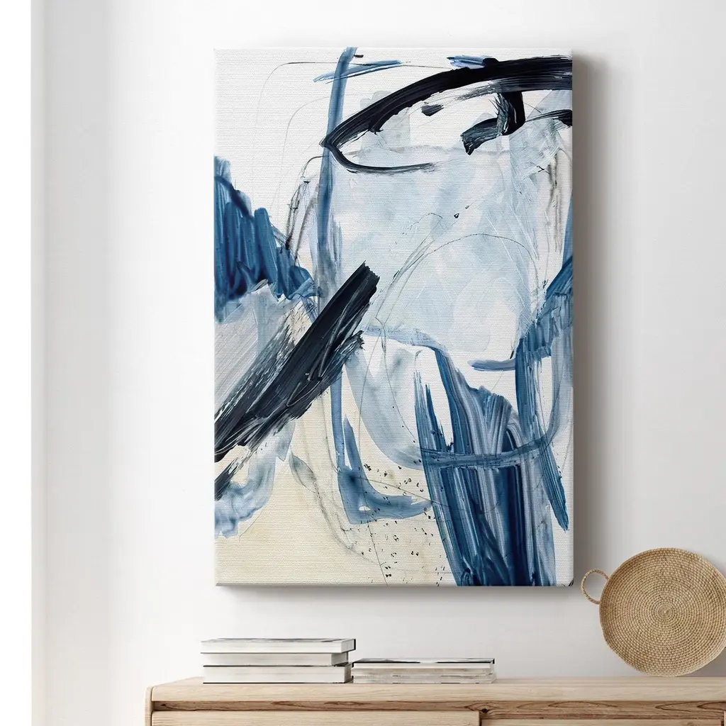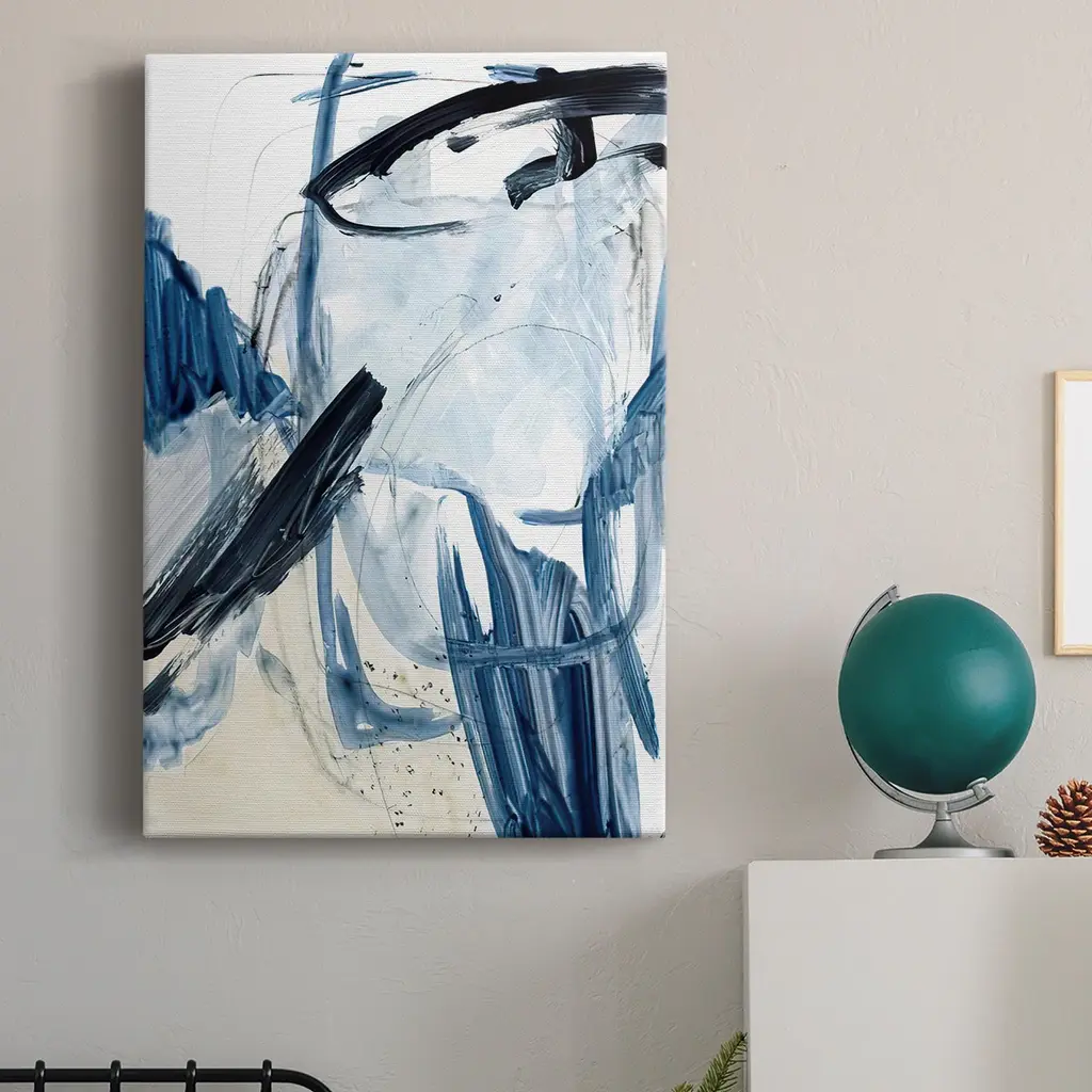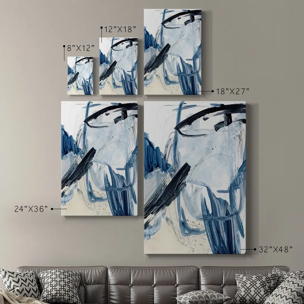 Indigo Swash I Premium Gallery Wrapped Canvas - Ready to Hang A premium hand stretched gallery wrapped canvas print created to last. Featuring a beveled a solid wood stretcher bar, each piece comes ready to hand 6 SIZES AVAILABLE 8''X12'' - Overall Size 12''X18'' - Overall Size 18''X27'' - Overall Size 24''x36'' - Overall Size 32''x48'' - Overall Size 40''x60'' - Overall Size Each piece is made to order. Built to Last Each piece comes ready to hang Solid wood stretcher Fade and Water resistant Made domestically