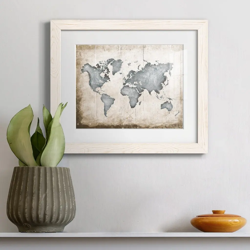 Industrial Map-Premium Framed Print - Ready to Hang Framed in distressed wood and available in an array of sizes and colors Each piece is joined and assembled by hand and comes ready to hang 2 INCH BEVELED MATTE BOARD PLEXIGLASS COVERING READY TO HANG MADE IN THE USA SOLID WOOD FRAME MADE IN USA FADE RESISTANT GICLEE PRINTING on Canvas or Paper