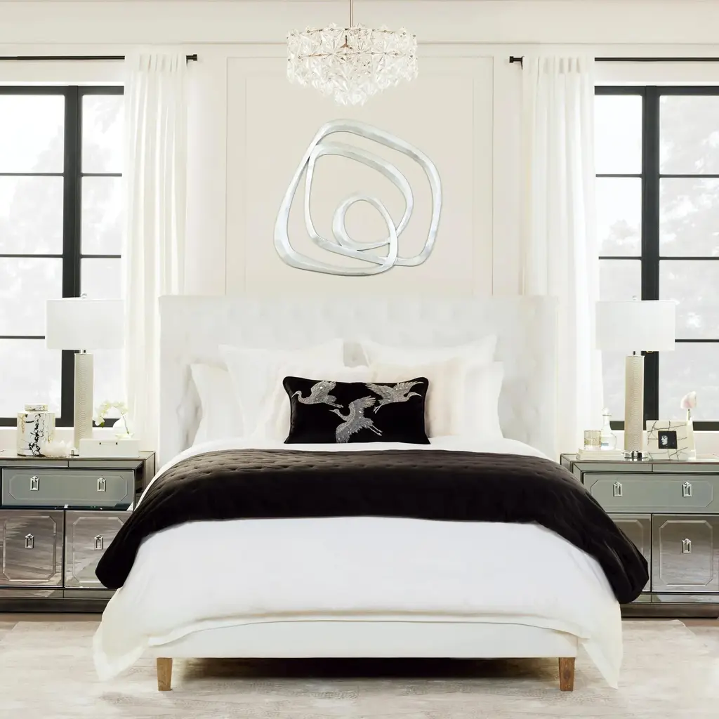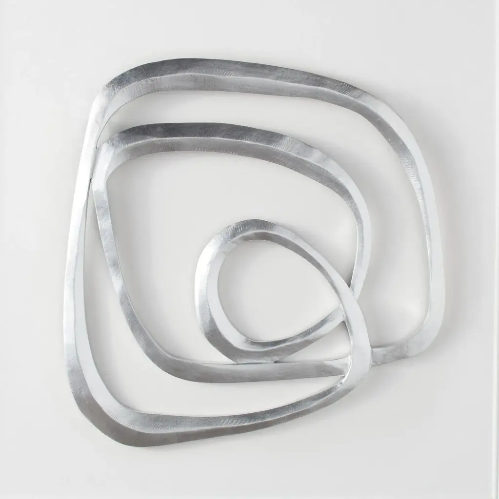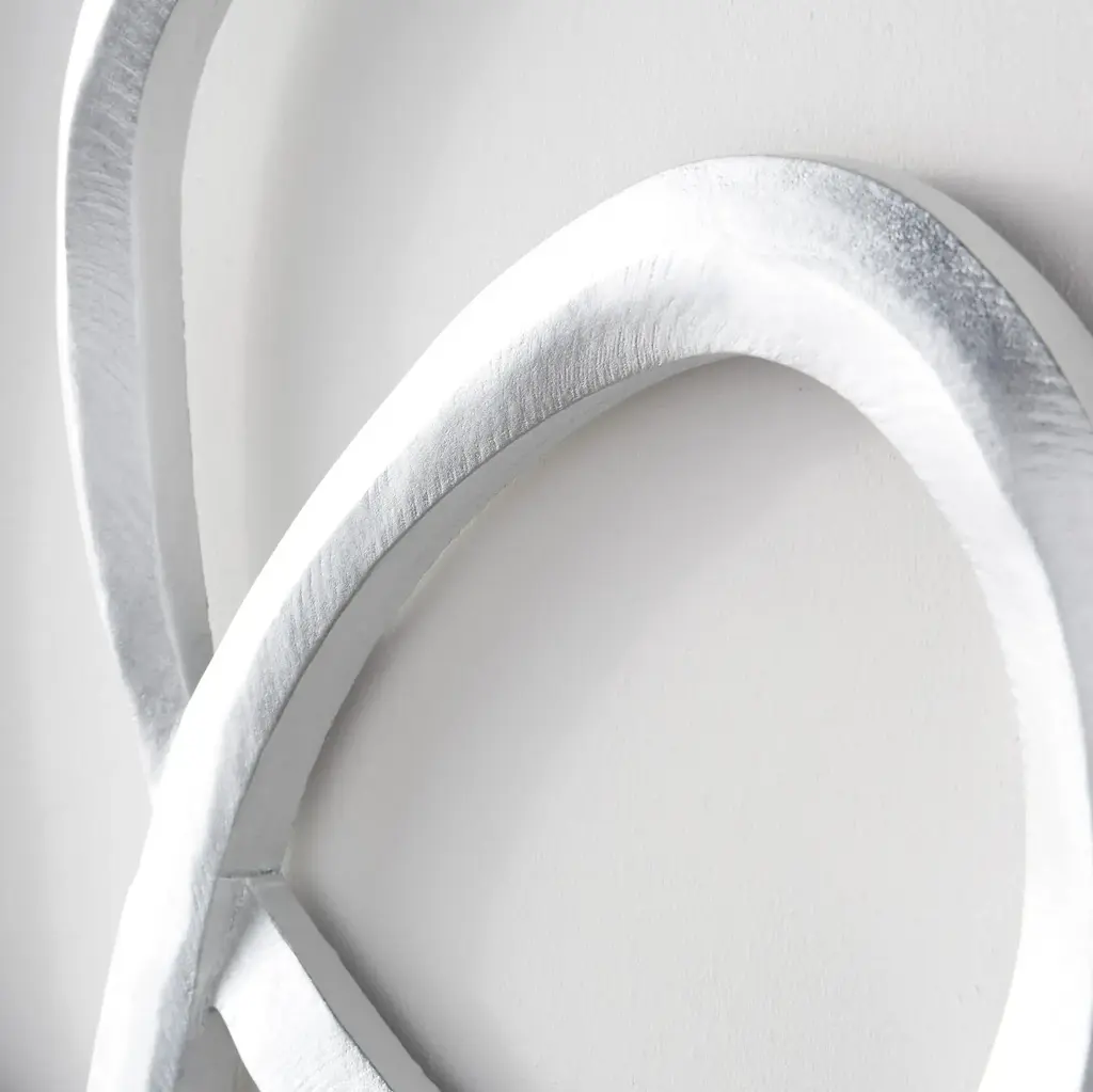 With its swirling design and metallic silver finish, this wooden sculpture transforms any blank wall into a focal point.
