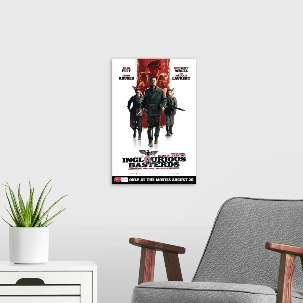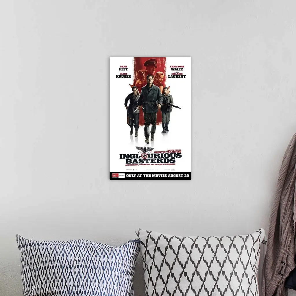 Inglourious Basterds - Movie Poster - Australian wall art for home and office decor. Discover canvas art prints, photos, mural, big canvas art and framed wall art in GreatBigCanvas.com's varied collections.