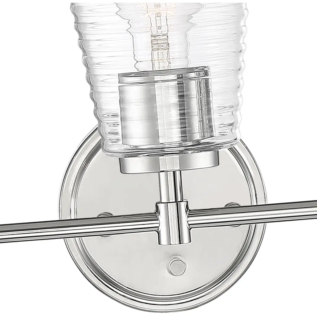 Modern sleek lines in polished nickel contrast perfectly with the crisp ribbing in the clear glass, adding a touch of texture and urban chic. Our Ingo collection offers simplicity with a bit of flair creating visual interest to your environment.