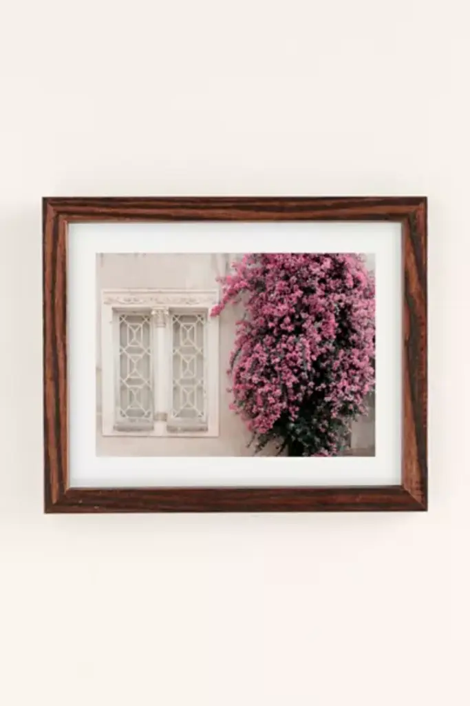 Art print by Ingrid Beddoes Photography featuring an ornate window paired with a vibrant, flowering bush. Printed on archival paper made from cotton pressed in Italian mills, this high-quality art print is available in sizes and frames just right for your space. First select your frame (or go frameless), then select your size. **About the Frames** \- The exact width of each frame may vary slightly \- All frames are manufactured in the US \- Matte frames are durable poly \- Wood frames are recycled wood \- All are fitted with protective plexiglass \- Finished with wood moldings, archival backer and protective bumpers **Size** \- Available in multiple sizes \- Use the Size Guides to find the size that fits your space **Content + Care** \- Wipe clean \- Made in the USA
