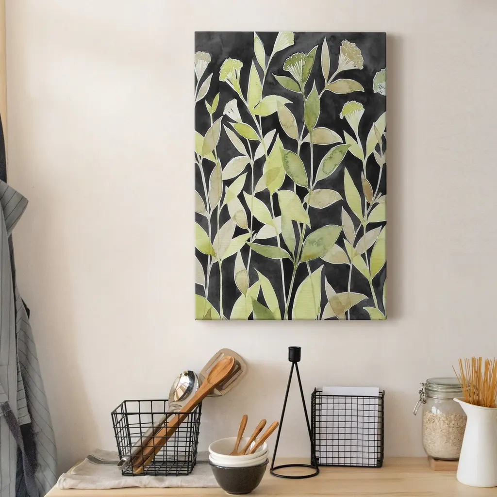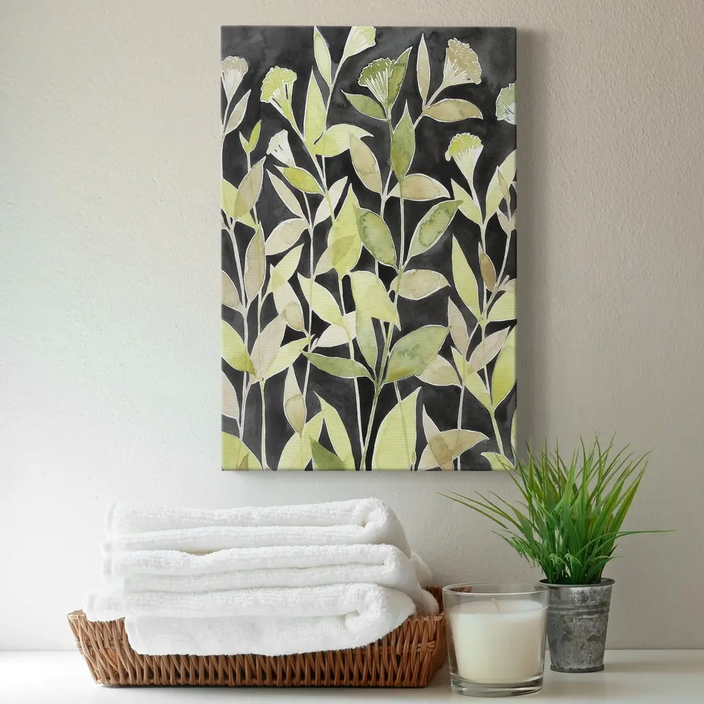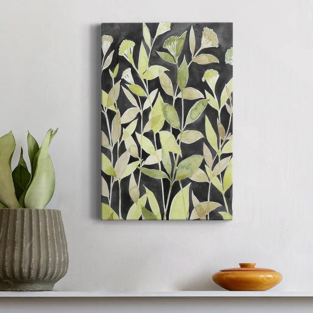 Ink Blooming Night II Premium Gallery Wrapped Canvas - Ready to Hang A premium hand stretched gallery wrapped canvas print created to last. Featuring a beveled a solid wood stretcher bar, each piece comes ready to hand 6 SIZES AVAILABLE 8''X12'' - Overall Size 12''X18'' - Overall Size 18''X27'' - Overall Size 24''x36'' - Overall Size 32''x48'' - Overall Size 40''x60'' - Overall Size Each piece is made to order. Built to Last Each piece comes ready to hang Solid wood stretcher Fade and Water resistant Made domestically