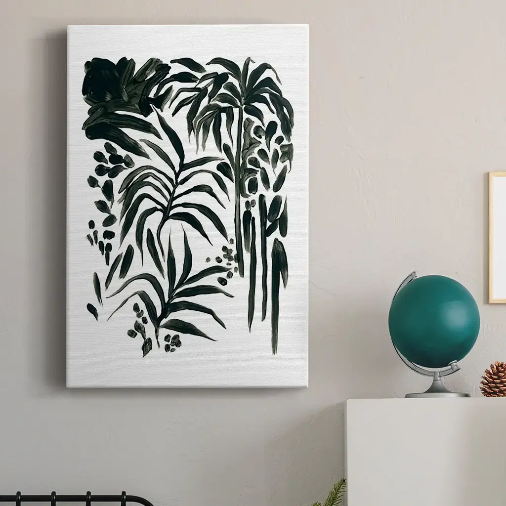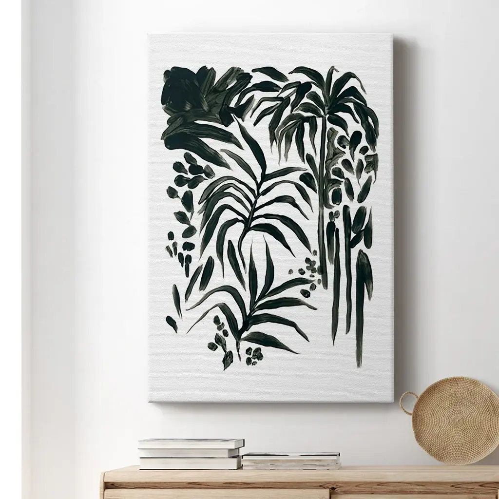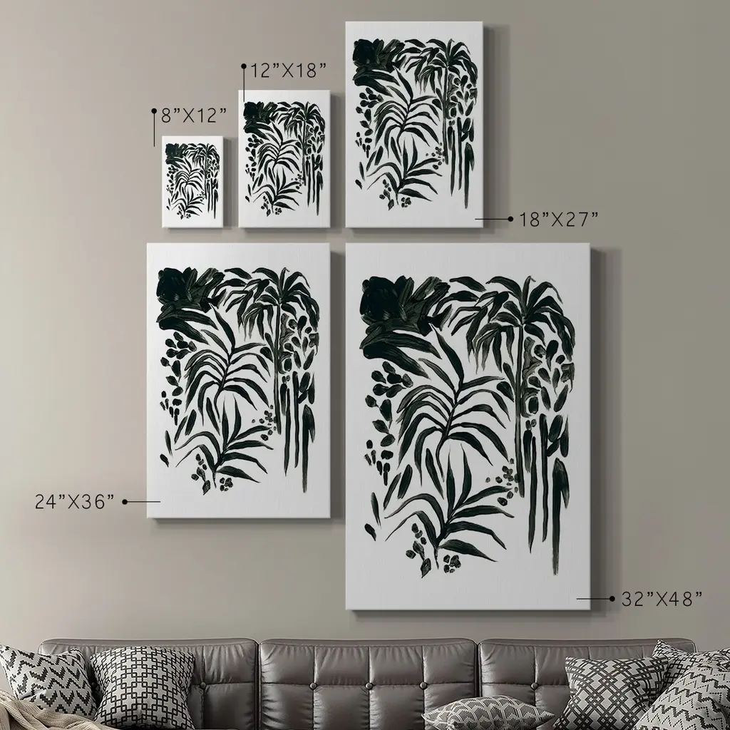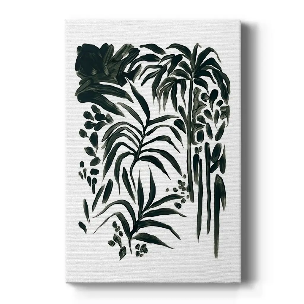 Ink Jungle I Premium Gallery Wrapped Canvas - Ready to Hang A premium hand stretched gallery wrapped canvas print created to last. Featuring a beveled a solid wood stretcher bar, each piece comes ready to hand 6 SIZES AVAILABLE 8''X12'' - Overall Size 12''X18'' - Overall Size 18''X27'' - Overall Size 24''x36'' - Overall Size 32''x48'' - Overall Size 40''x60'' - Overall Size Each piece is made to order. Built to Last Each piece comes ready to hang Solid wood stretcher Fade and Water resistant Made domestically