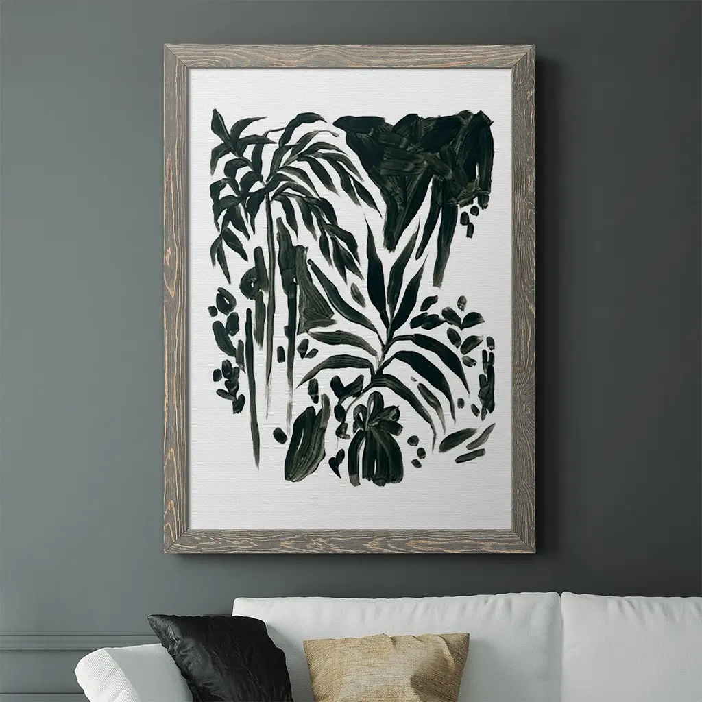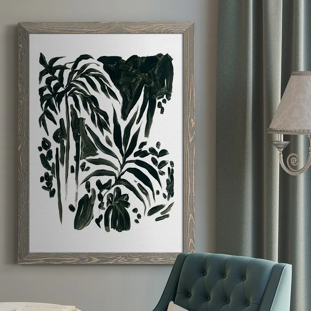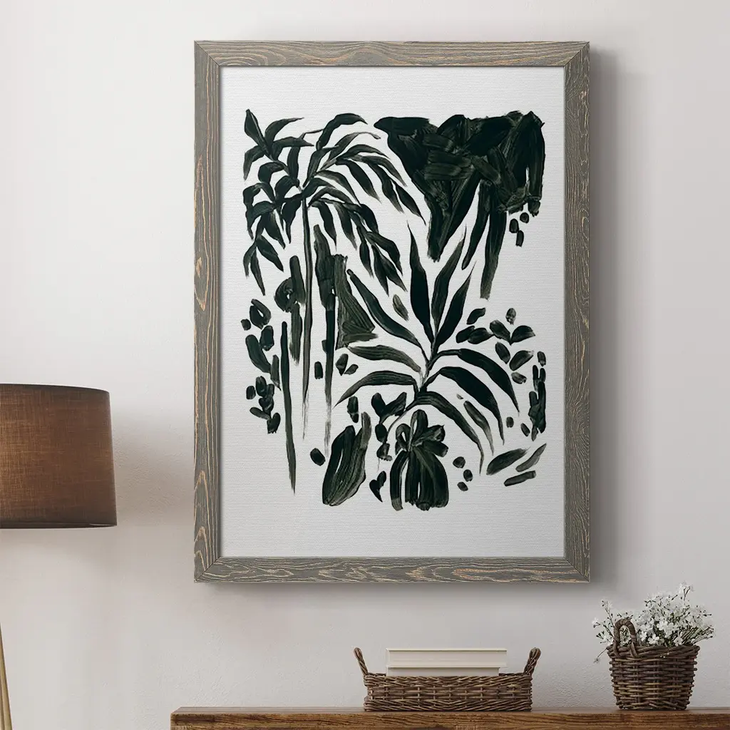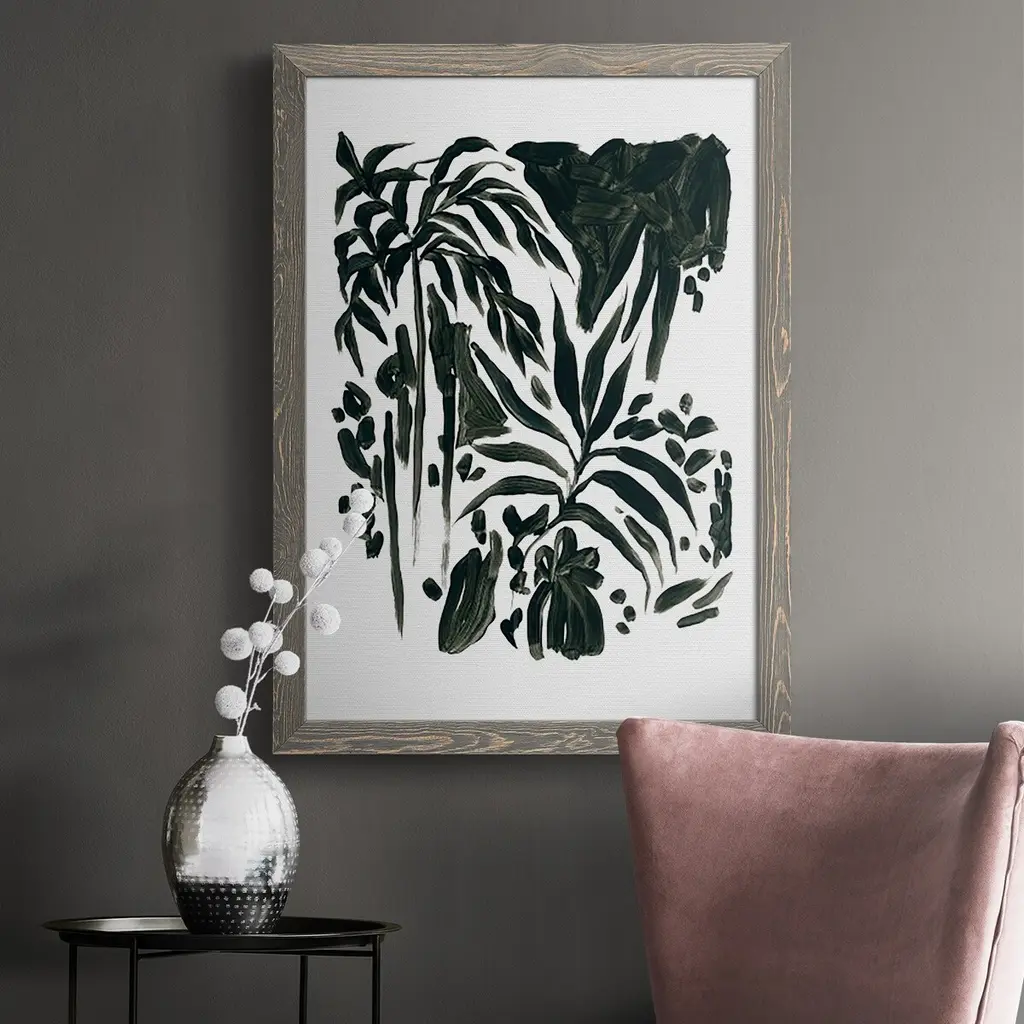 Ink Jungle Ii-Premium Framed Canvas - Ready To Hang - 27.5x37.5 - Walnut