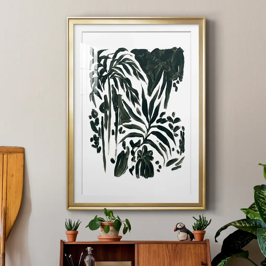 Ink Jungle II Premium Framed Print - Ready to Hang A Premium Framed Print created to last. Framed in distressed wood and available in an array of sizes and colors Featuring a beveled a solid wood stretcher bar, each piece comes ready to hand 4 SIZES AVAILABLE 30.5''X42.5'' - Overall Size 26.5'X36.5'' - Overall Size 22.5''x30.5'' - Overall Size 18.5''x24.5'' - Overall Size Each piece is made to order. Each piece comes with hanging hardware. Made in the USA Ready to Hang Giclee Paper Print Acrylic Glass Beveled Matt Board