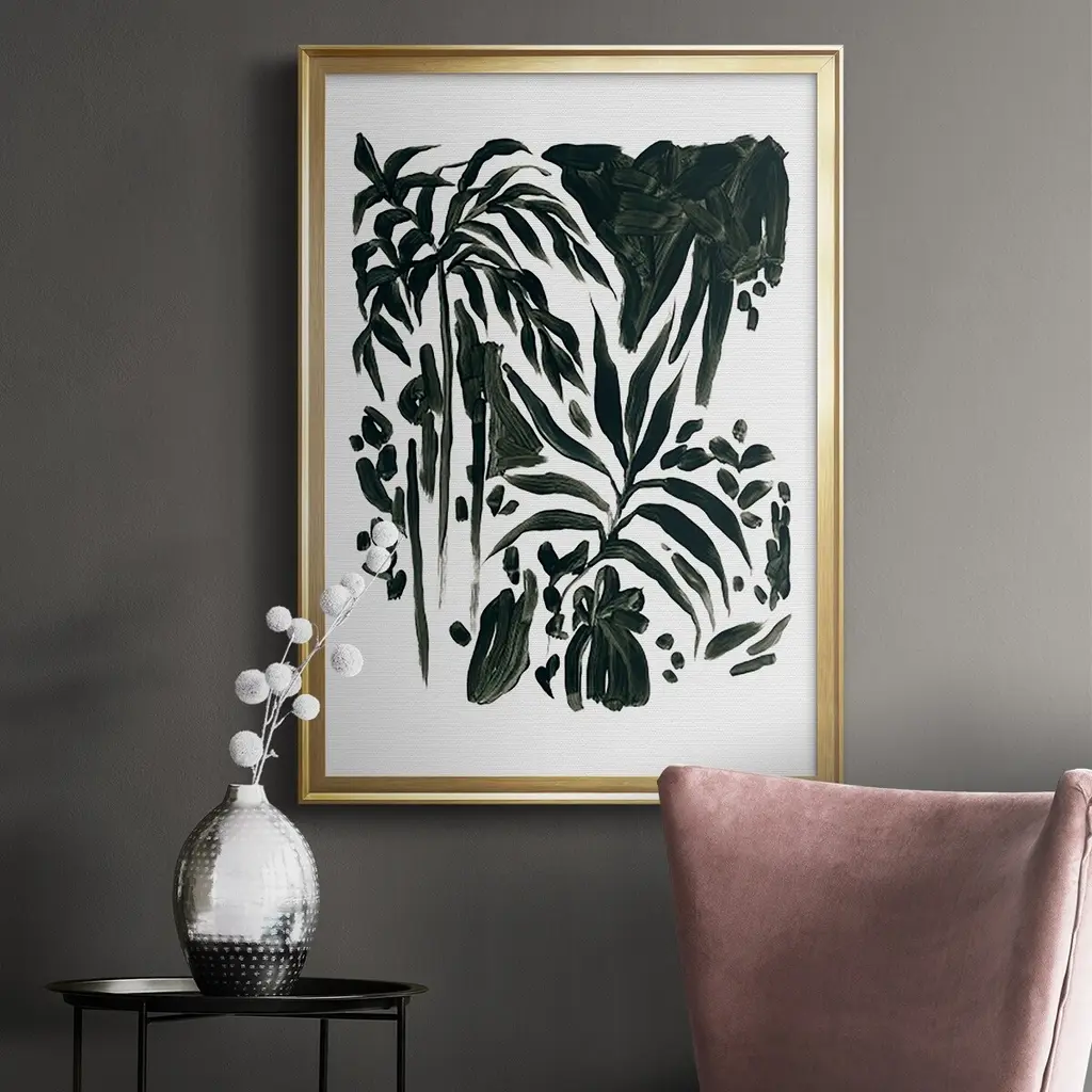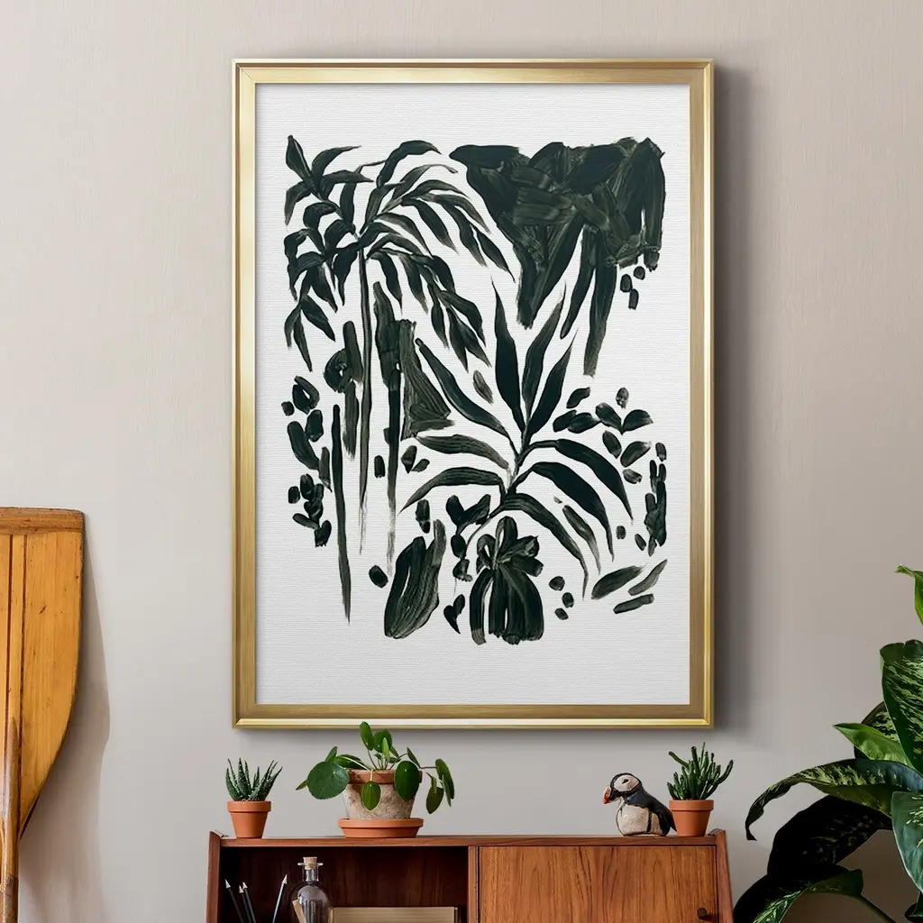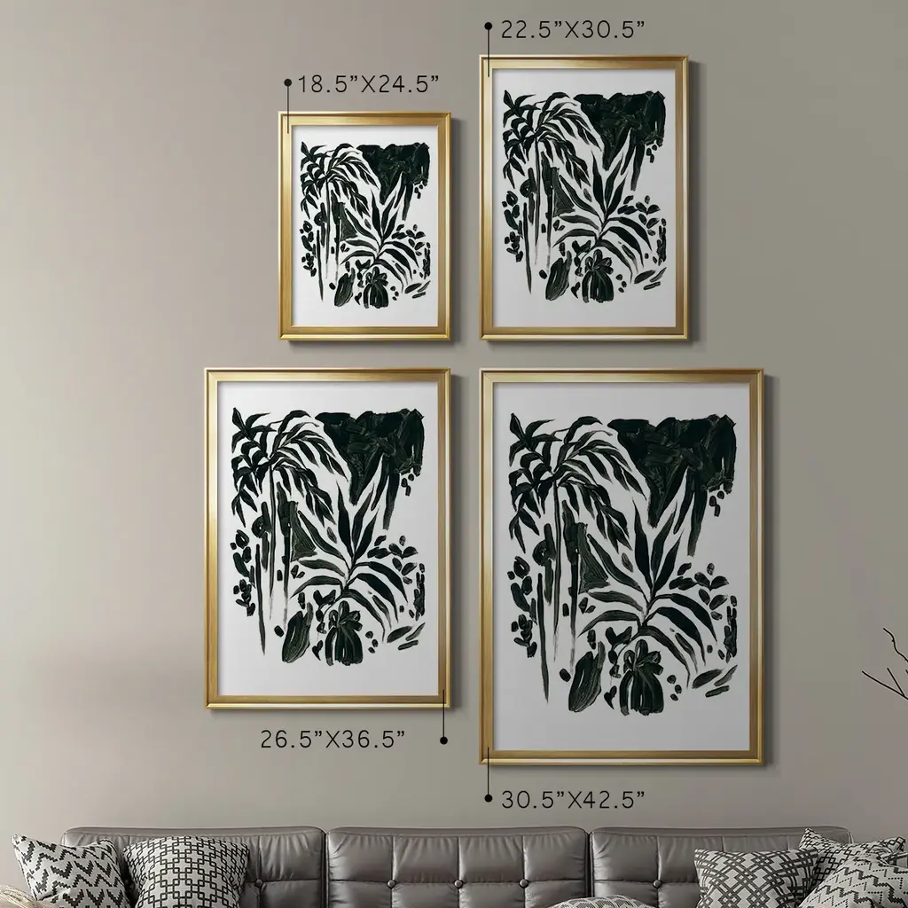 Ink Jungle II Premium Framed Print - Ready to Hang A Premium Framed Print created to last. Framed in distressed wood and available in an array of sizes and colors Featuring a beveled a solid wood stretcher bar, each piece comes ready to hand 4 SIZES AVAILABLE 30.5''X42.5'' - Overall Size 26.5'X36.5'' - Overall Size 22.5''x30.5'' - Overall Size 18.5''x24.5'' - Overall Size Each piece is made to order. Each piece comes with hanging hardware. Made in the USA Ready to Hang
