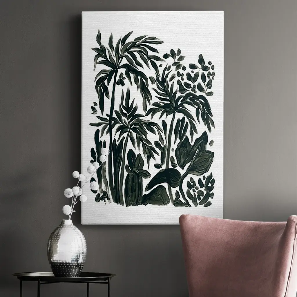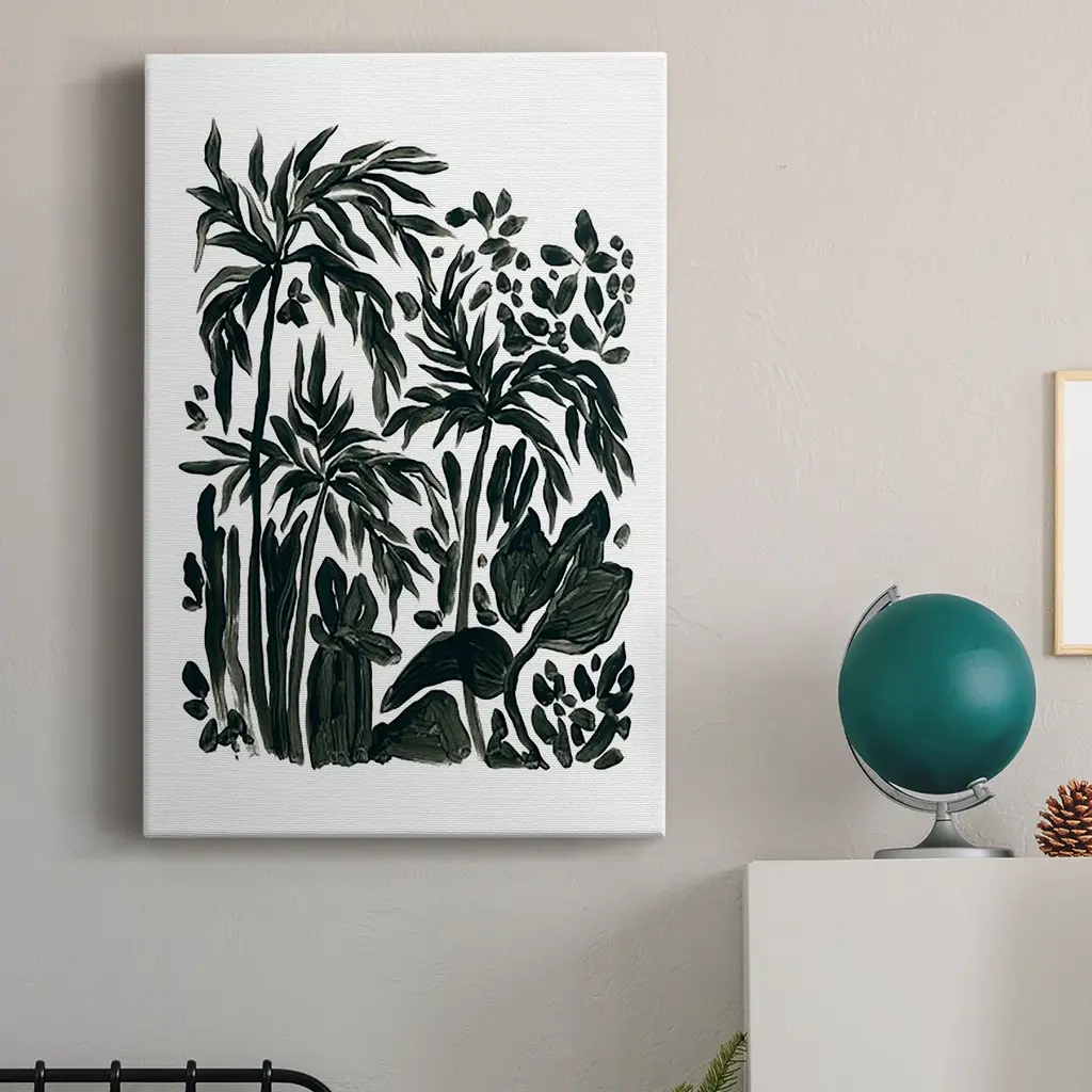 Ink Jungle III Premium Gallery Wrapped Canvas - Ready to Hang A premium hand stretched gallery wrapped canvas print created to last. Featuring a beveled a solid wood stretcher bar, each piece comes ready to hand 6 SIZES AVAILABLE 8''X12'' - Overall Size 12''X18'' - Overall Size 18''X27'' - Overall Size 24''x36'' - Overall Size 32''x48'' - Overall Size 40''x60'' - Overall Size Each piece is made to order. Built to Last Each piece comes ready to hang Solid wood stretcher Fade and Water resistant Made domestically