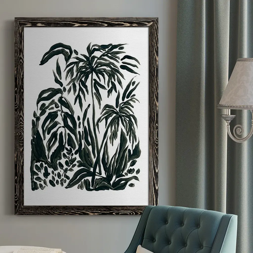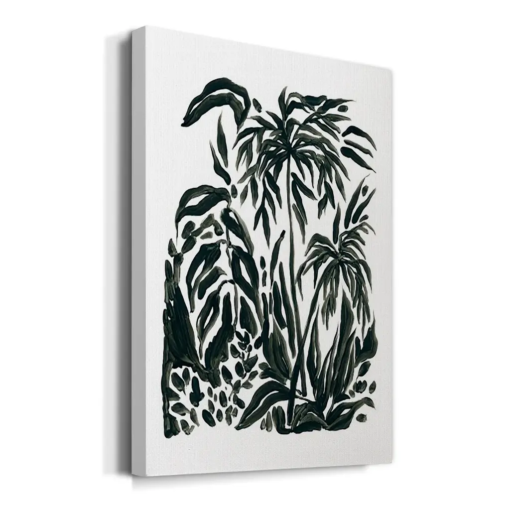 Ink Jungle IV Premium Gallery Wrapped Canvas - Ready to Hang A premium hand stretched gallery wrapped canvas print created to last. Featuring a beveled a solid wood stretcher bar, each piece comes ready to hand 6 SIZES AVAILABLE 8''X12'' - Overall Size 12''X18'' - Overall Size 18''X27'' - Overall Size 24''x36'' - Overall Size 32''x48'' - Overall Size 40''x60'' - Overall Size Each piece is made to order. Built to Last Each piece comes ready to hang Solid wood stretcher Fade and Water resistant Made domestically