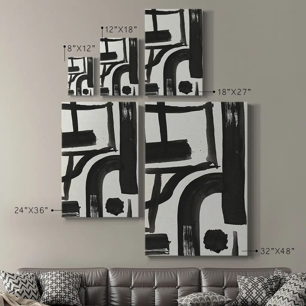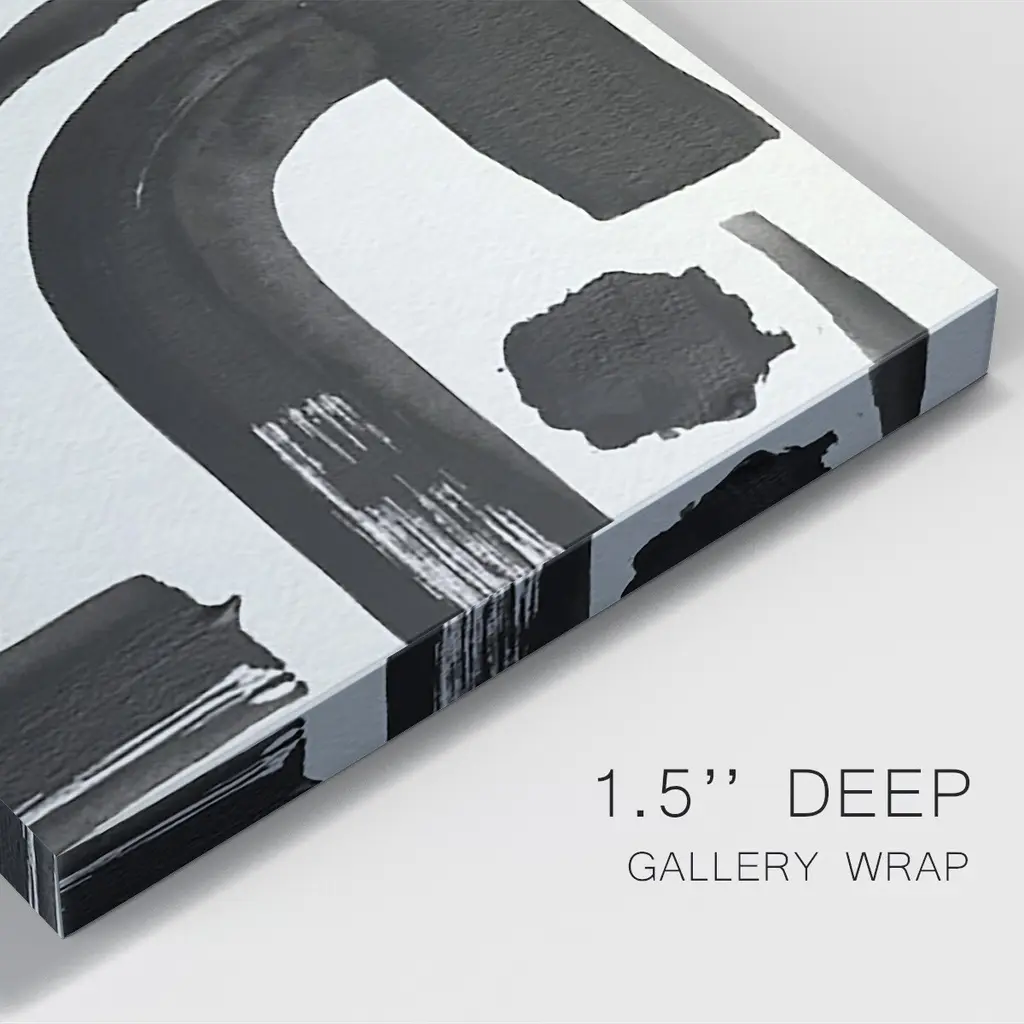 Inkwell Intersect I Premium Gallery Wrapped Canvas - Ready to Hang A premium hand stretched gallery wrapped canvas print created to last. Featuring a beveled a solid wood stretcher bar, each piece comes ready to hand 6 SIZES AVAILABLE 8''X12'' - Overall Size 12''X18'' - Overall Size 18''X27'' - Overall Size 24''x36'' - Overall Size 32''x48'' - Overall Size 40''x60'' - Overall Size Each piece is made to order. Built to Last Each piece comes ready to hang Solid wood stretcher Fade and Water resistant Made domestically
