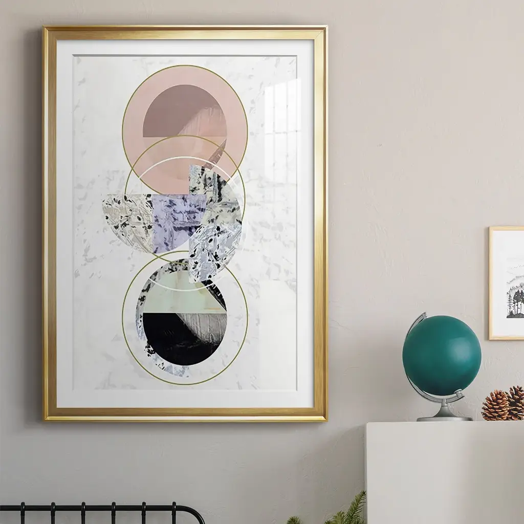 Inner Circles I Premium Framed Print - Ready to Hang A Premium Framed Print created to last. Framed in distressed wood and available in an array of sizes and colors Featuring a beveled a solid wood stretcher bar, each piece comes ready to hand 4 SIZES AVAILABLE 30.5''X42.5'' - Overall Size 26.5'X36.5'' - Overall Size 22.5''x30.5'' - Overall Size 18.5''x24.5'' - Overall Size Each piece is made to order. Each piece comes with hanging hardware. Made in the USA Ready to Hang Giclee Paper Print Acrylic Glass Beveled Matt Board
