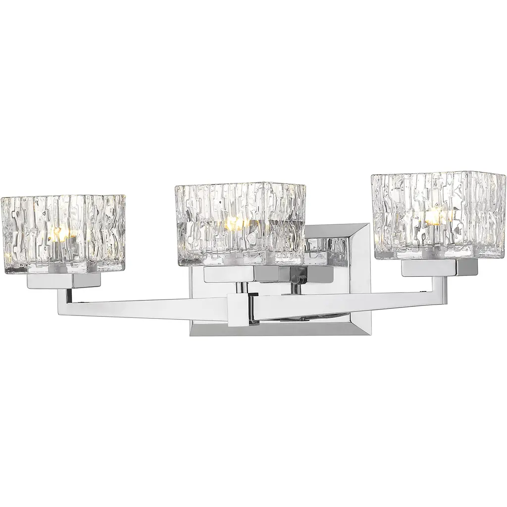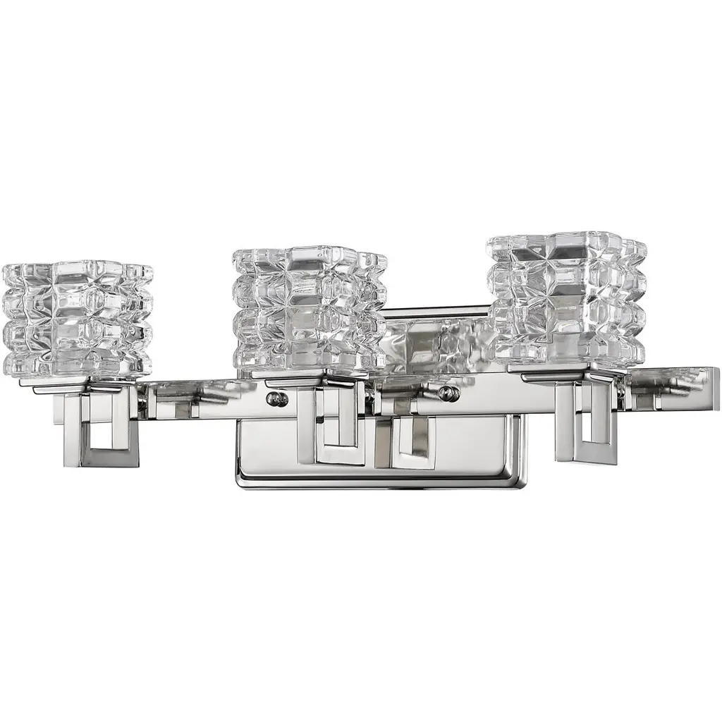 Innovations 310-3W-PC-CL-LED 3-Light Bath Vanity Light Polished Chrome. Style: Retro, Art Deco. Metal Finish: Polished Chrome. Metal Finish (Canopy/Backplate): Polished Chrome. Material: Cast Brass, Steel, Glass. Dimension(in): 6(H) x 24(W) x 6. 25(Ext). Bulb: (3)5W G9,Dimmable(Not Included). Maximum Wattage Per Socket: 60. Voltage: 120. Color Temperature (Kelvin): 3000. CRI: 82. Lumens: 500. Glass Shade Description: Clear Wellfleet Glass. Glass or Metal Shade Color: Clear. Shade Material: Glass. Glass Type: Transparent. Shade Shape: Rectangular. Shade Dimension(in): 4(W) x 5. 5(H) x 4(Depth). Backplate Dimension(in): 4. 5(H) x 4. 5(W) x 0. 75(Depth). ADA Compliant: No. California Proposition 65 Warning Required: Yes. UL and ETL Certification: Damp Location.