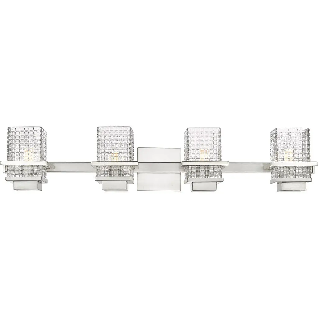 Innovations 310-4W-PC-CL 4-Light Bath Vanity Light Polished Chrome. Style: Retro, Art Deco. Metal Finish: Polished Chrome. Metal Finish (Canopy/Backplate): Polished Chrome. Material: Cast Brass, Steel, Glass. Dimension(in): 6(H) x 33(W) x 6. 25(Ext). Bulb: (4)60W G9,Dimmable(Not Included). Maximum Wattage Per Socket: 60. Voltage: 120. Color Temperature (Kelvin): 2200. CRI: 99. Lumens: 450. Glass Shade Description: Clear Wellfleet Glass. Glass or Metal Shade Color: Clear. Shade Material: Glass. Glass Type: Transparent. Shade Shape: Rectangular. Shade Dimension(in): 4(W) x 5. 5(H) x 4(Depth). Backplate Dimension(in): 4. 5(H) x 4. 5(W) x 0. 75(Depth). ADA Compliant: No. California Proposition 65 Warning Required: Yes. UL and ETL Certification: Damp Location.
