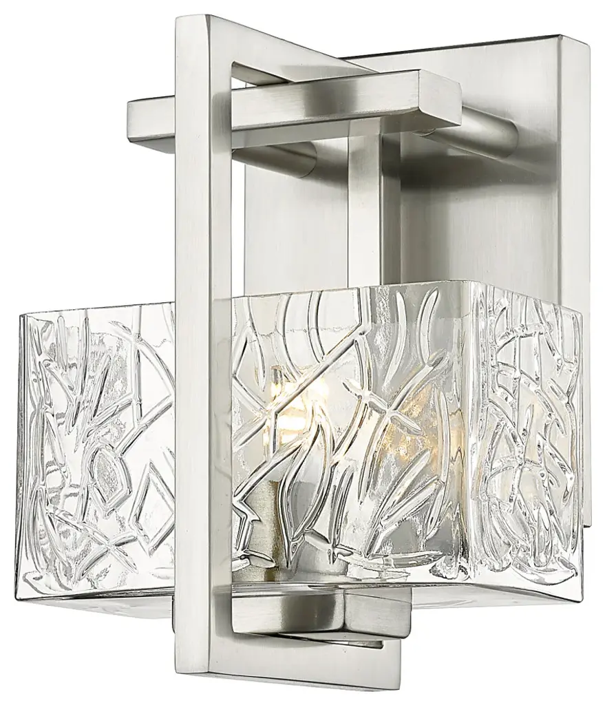 Innovations 312-1W-SG-CL 1-Light Bath Vanity Light Satin Gold. Style: Art Deco, Mission. Metal Finish: Satin Gold. Metal Finish (Canopy/Backplate): Satin Gold. Material: Cast Brass, Steel, Glass. Dimension(in): 8(H) x 5. 25(W) x 5. 5(Ext). Bulb: (1)60W G9,Dimmable(Not Included). Maximum Wattage Per Socket: 60. Voltage: 120. Color Temperature (Kelvin): 2200. CRI: 99. Lumens: 450. Glass Shade Description: Clear Striate Glass. Glass or Metal Shade Color: Clear. Shade Material: Glass. Glass Type: Transparent. Shade Shape: Rectangular. Shade Dimension(in): 6(W) x 3. 375(H) x 4. 5(Depth). Backplate Dimension(in): 4. 5(H) x 4. 5(W) x 0. 75(Depth). ADA Compliant: No. California Proposition 65 Warning Required: Yes. UL and ETL Certification: Damp Location.