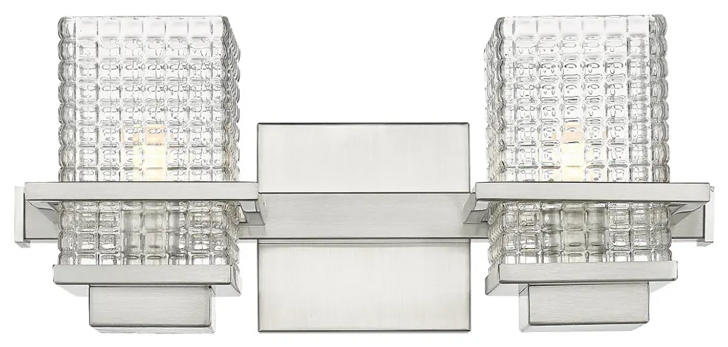 Innovations 312-2W-SG-CL 2-Light Bath Vanity Light Satin Gold. Style: Art Deco, Mission. Metal Finish: Satin Gold. Metal Finish (Canopy/Backplate): Satin Gold. Material: Cast Brass, Steel, Glass. Dimension(in): 9(H) x 15(W) x 5. 5(Ext). Bulb: (2)60W G9,Dimmable(Not Included). Maximum Wattage Per Socket: 60. Voltage: 120. Color Temperature (Kelvin): 2200. CRI: 99. Lumens: 450. Glass Shade Description: Clear Striate Glass. Glass or Metal Shade Color: Clear. Shade Material: Glass. Glass Type: Transparent. Shade Shape: Rectangular. Shade Dimension(in): 6(W) x 3. 375(H) x 4. 5(Depth). Backplate Dimension(in): 4. 5(H) x 4. 5(W) x 0. 75(Depth). ADA Compliant: No. California Proposition 65 Warning Required: Yes. UL and ETL Certification: Damp Location.