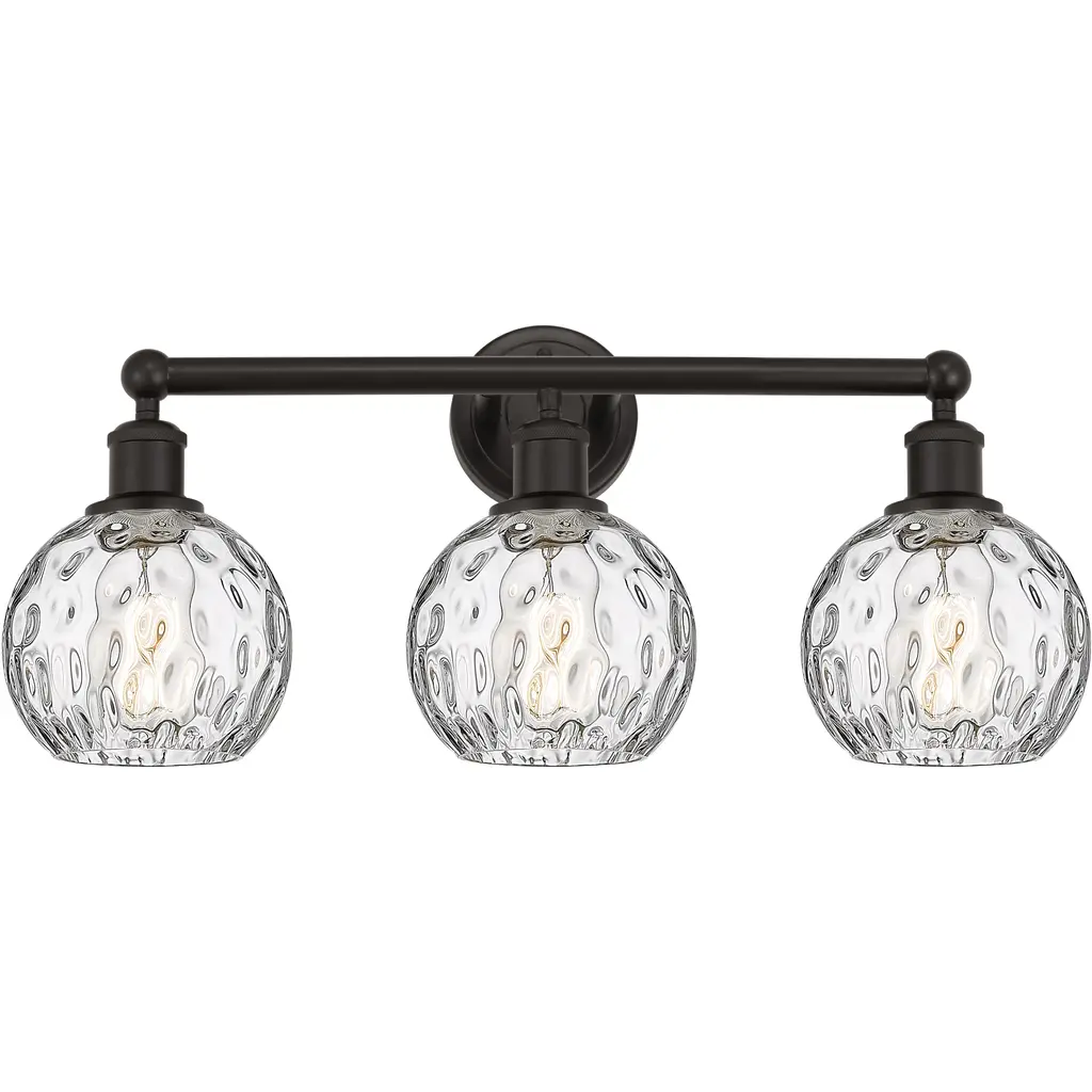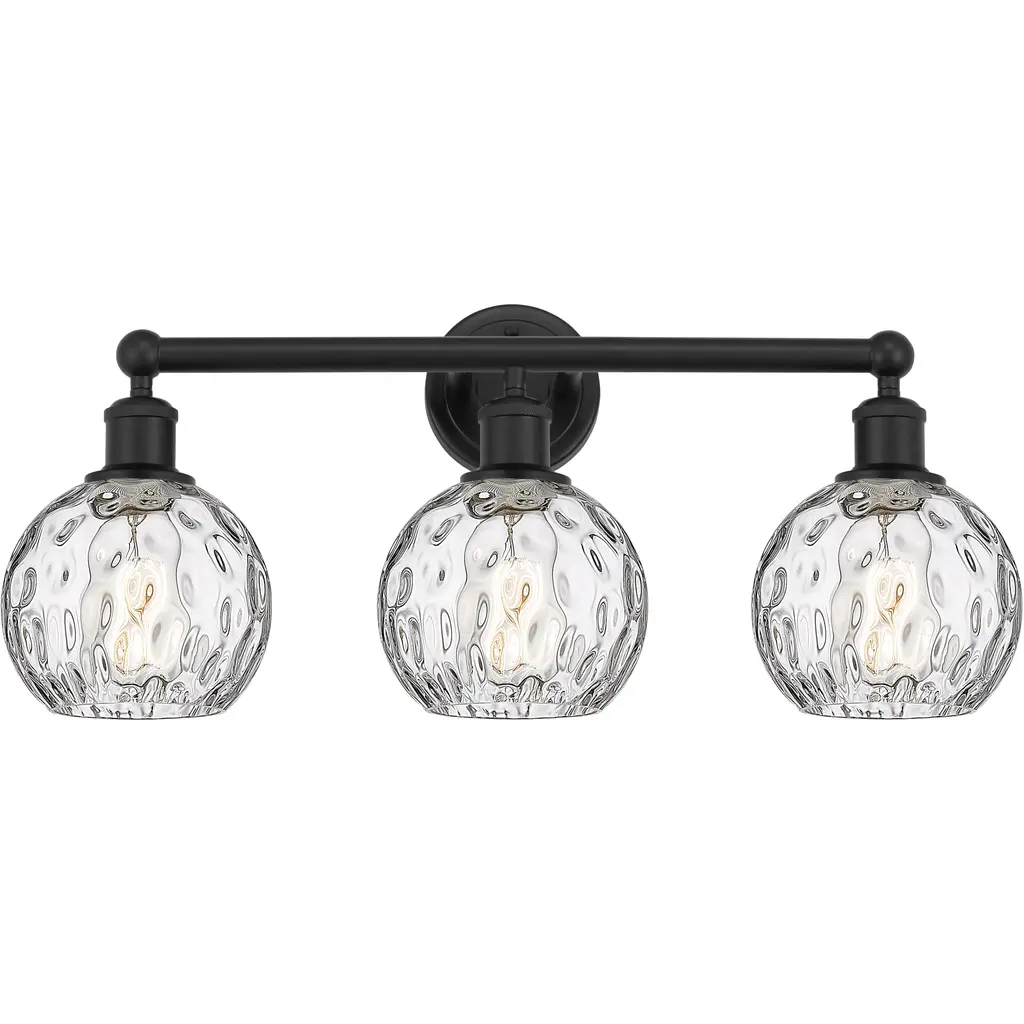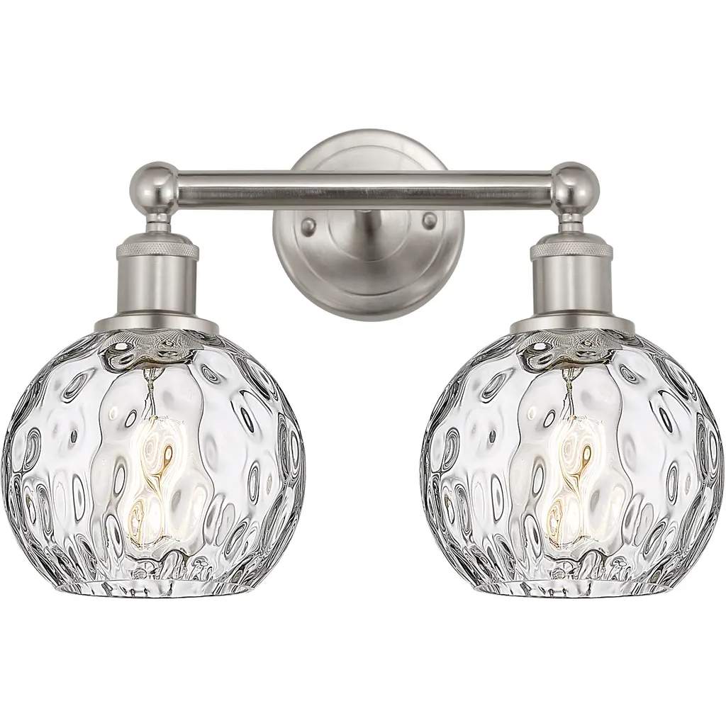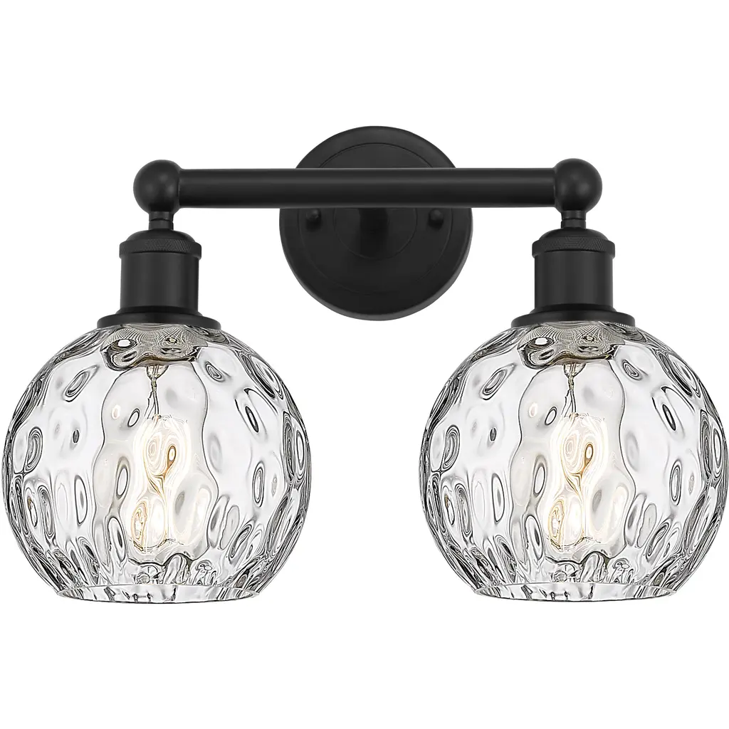 Innovations 516-2W-BK-G1215-6-LED Athens Water Glass 2 Light 16 inch Bath Vanity Light Matte Black. Collection: Ballston. Style: Industrial, Modern Contempo, Restoration-Vintage, Transitional. Metal Finish: Matte Black. Metal Finish(Canopy/Backplate): Matte Black. Material: Steel, Cast Brass, Glass. Dimensions(in): 11(H) x 16(W) x 8(Ext). Bulb: (2)6W LED(Included). Maximum Wattage Per Socket: 100. Voltage: 120. Dimmable: Yes. Color Temperature (Kelvin): 2700. Color Rendering Index (CRI): 82. Lumens: 600. Life Expectancy (Hours): 15000. Glass Shade Description: Clear Athens Water Glass 6". Glass Type: Transparent. Shade Shape: Globe/Orb. Glass or Metal Shade Color: Clear Water Glass. Shade Material: Glass. Shade Dimensions(in): 6(W) x 5(H). Fitter Measurement (Glass or Metal Shade Fitter Size): Neckless with a 2.125 inch Hole. Backplate Dimenisons(in): 4.5(H) x 6(W) x 0.75(Depth). Mounting Center to Top: 2.25. Reversible (Can be hung with bulbs facing uo or down): Yes. California Proposition 65 Warning Required: Yes. UL and ETL Certification: Damp Location.