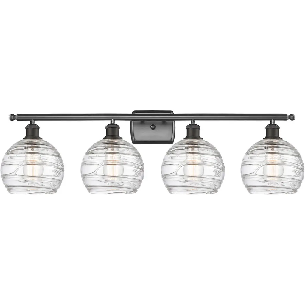 Innovations 516-4W-WPC-G1013 4-Light Bath Vanity Light White and Polished Chrome. Collection: Ballston. Style: Art Nouveau, Industrial, Restoration-Vintage, Transitional. Metal Finish: White and Polished Chrome. Metal Finish (Canopy/Backplate): White. Accent Color: Polished Chrome. Material: Steel, Cast Brass, Glass. Dimension(in): 11(H) x 36(W) x 8(Ext). Bulb: (4)60W Medium Base,Dimmable(Not Included). Maximum Wattage Per Socket: 100. Voltage: 120. Color Temperature (Kelvin): 2200. CRI: 99. 9. Lumens: 220. Glass Shade Description: Deco Swirl Belfast. Glass or Metal Shade Color: Deco Swirl. Shade Material: Glass. Glass Type: Transparent. Shade Shape: Sphere. Shade Dimension(in): 6(W) x 6(H). Fitter Measurement (Glass Or Metal Shade Fitter Size): Neckless with a 2. 125 inch Hole. Backplate Dimension(in): 4. 5(H) x 6(W) x 0. 75(Depth). ADA Compliant: No. California Proposition 65 Warning Required: Yes. UL and ETL Certification: Damp Location.