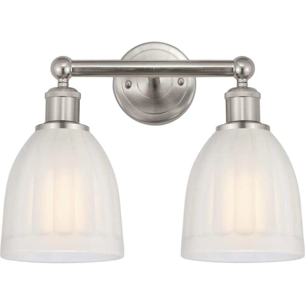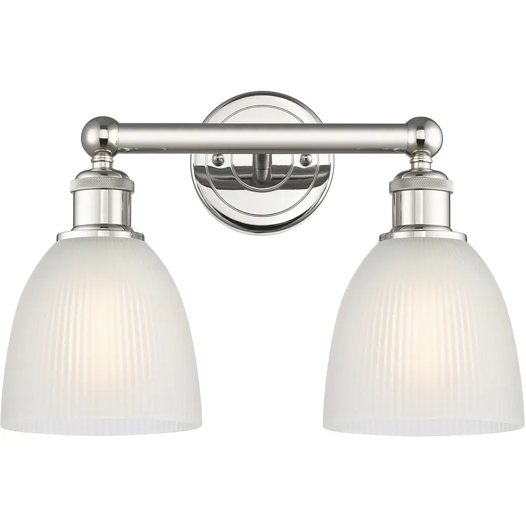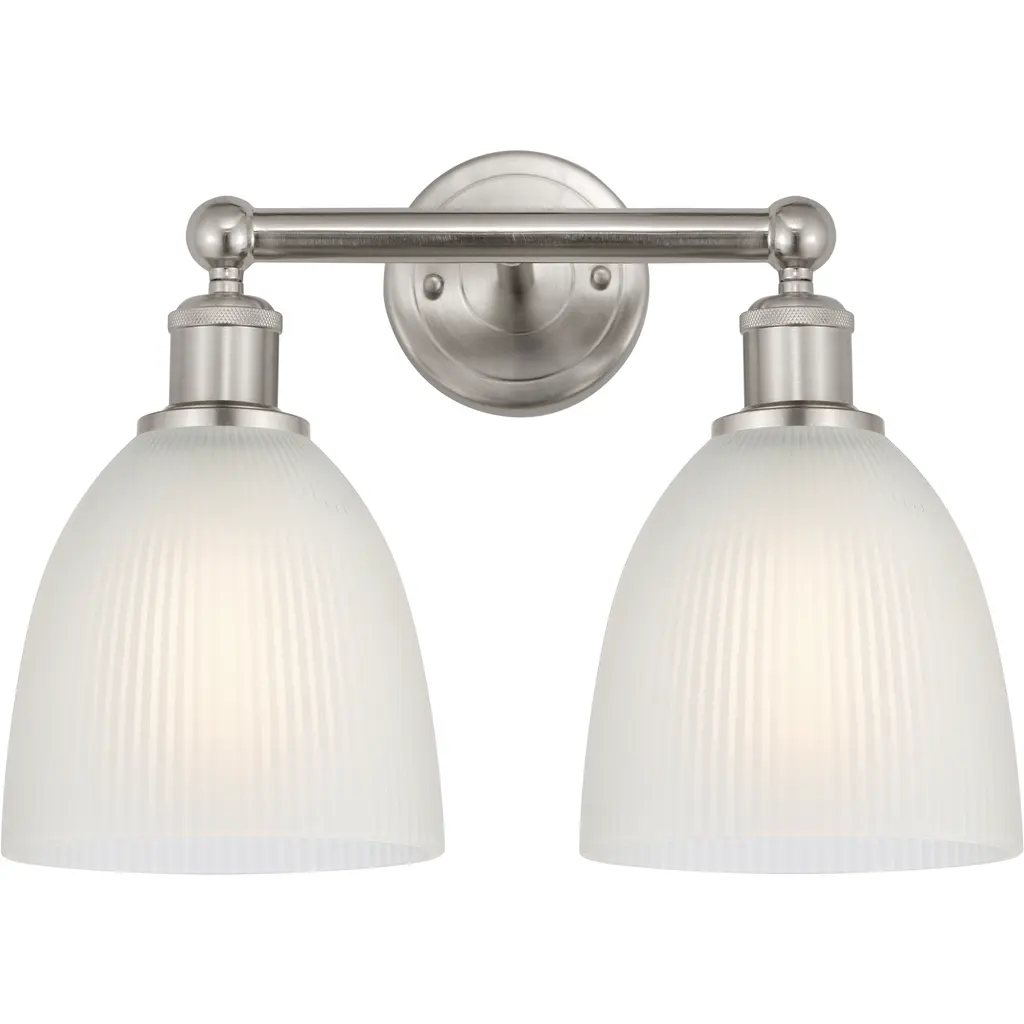 Innovations 616-2W-SN-G382 Castile 2 Light 15 inch Bath Vanity Light Brushed Satin Nickel. Collection: Edison. Style: Industrial, Modern Contempo, Restoration-Vintage, Transitional. Metal Finish: Brushed Satin Nickel. Metal Finish(Canopy/Backplate): Brushed Satin Nickel. Material: Steel, Cast Brass, Glass. Dimensions(in): 11.5(H) x 15(W) x 7.5(Ext). Bulb: (2)60W Medium Base Incandescent(Not Included). Maximum Wattage Per Socket: 100. Voltage: 120. Dimmable: Yes. Color Temperature (Kelvin): 2200. Color Rendering Index (CRI): 99.9. Lumens: 220. Life Expectancy (Hours): 2000. Glass Shade Description: Clear Castile. Glass Type: Transparent. Shade Shape: Dome. Glass or Metal Shade Color: Clear. Shade Material: Glass. Shade Dimensions(in): 6(W) x 6(H). Fitter Measurement (Glass or Metal Shade Fitter Size): Neckless with a 2.125 inch Hole. Backplate Dimenisons(in): 4.5(W) x 0.75(Depth). Mounting Center to Top: 2.5. ADA Compliant: No. Reversible (Can be hung with bulbs facing uo or down): Yes. California Proposition 65 Warning Required: Yes. UL and ETL Certification: Damp Location.