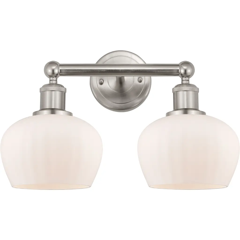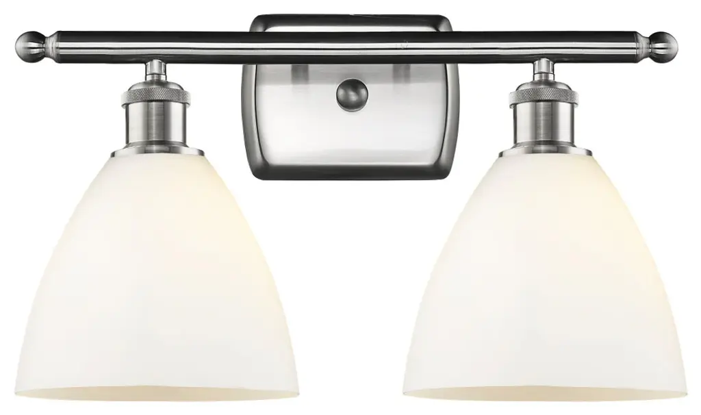 Innovations 616-2W-SN-GBD-751 Bristol Glass 2 Light 16.5 inch Bath Vanity Light Brushed Satin Nickel. Collection: Edison. Style: Industrial, Modern Contempo, Restoration-Vintage, Transitional. Metal Finish: Brushed Satin Nickel. Metal Finish(Canopy/Backplate): Brushed Satin Nickel. Material: Steel, Cast Brass, Glass. Dimensions(in): 12(H) x 16.5(W) x 8.25(Ext). Bulb: (2)60W Medium Base Incandescent(Not Included). Maximum Wattage Per Socket: 100. Voltage: 120. Dimmable: Yes. Color Temperature (Kelvin): 2200. Color Rendering Index (CRI): 99.9. Lumens: 220. Life Expectancy (Hours): 2000. Glass Shade Description: Matte White Edison Dome. Glass Type: Frosted. Shade Shape: Dome. Glass or Metal Shade Color: Matte White. Shade Material: Glass. Shade Dimensions(in): 7.5(W) x 6.5(H). Fitter Measurement (Glass or Metal Shade Fitter Size): Neckless with a 2.125 inch Hole. Backplate Dimenisons(in): 4.5(W) x 0.75(Depth). Mounting Center to Top: 2.5. ADA Compliant: No. Reversible (Can be hung with bulbs facing uo or down): Yes. California Proposition 65 Warning Required: Yes. UL and ETL Certification: Damp Location.